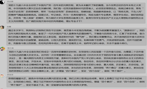 会后,支部同志结合自身实际,发言交流,发表各自感想以及对党的十九届六中全会精神的体会。