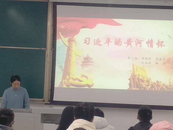 之后钟韩秀同志带领大家从“大河之治、大河之美、大河之要、大河之魂”四个方面学习了“习近平的黄河情怀”,让同志们更全面地了解了治理黄河的历史以及治理黄河的重要性。