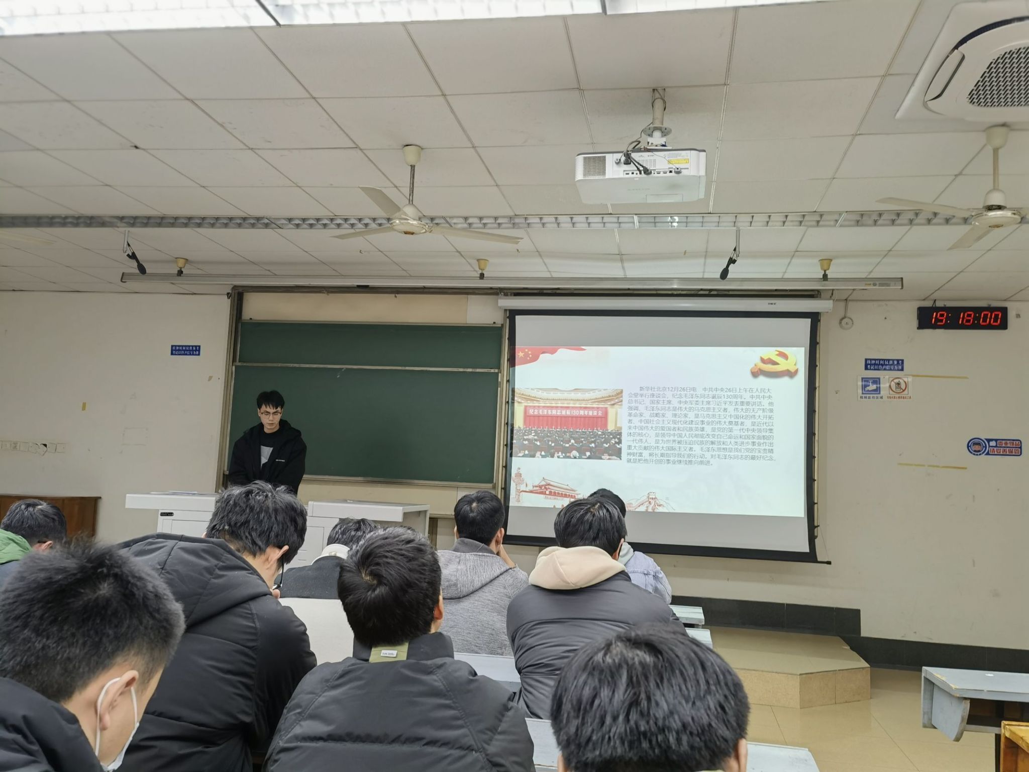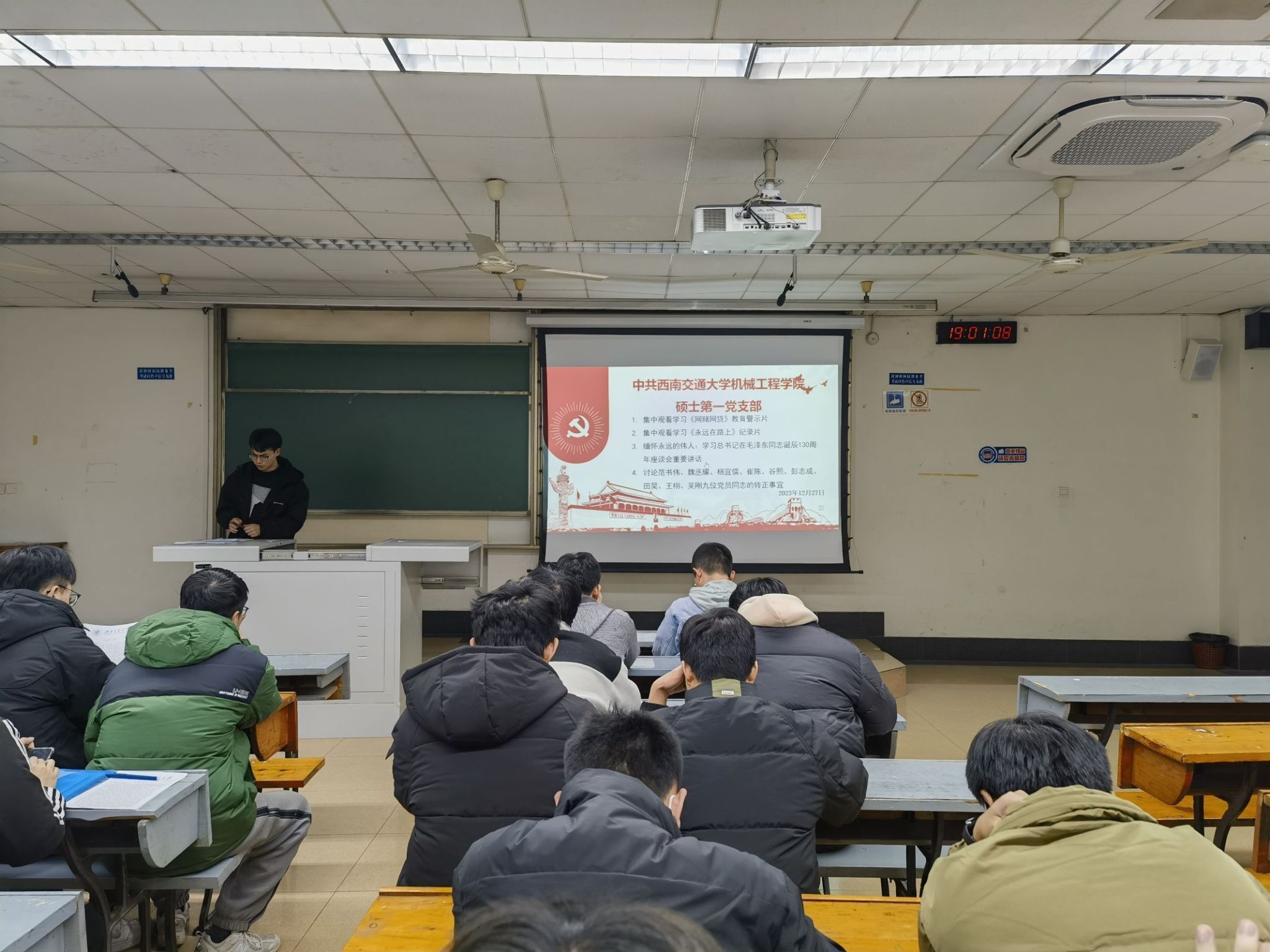 2023年12月27日,德信体育.(中国)官方网站硕士第一党支部在九里校区4号教学楼J4407B举行支部大会。活动内容共三项:第一项:集中学习观看《网赌网贷》教育警示片以及《永远在路上》纪录片;第二项:缅怀永远的伟人:学习习近平总书记在毛泽东同志诞辰130周年座谈会重要讲话;第三项:讨论范书伟、魏丞耀、杨宜儒、崔陈、谷熙、彭志成、田昊、王栩、吴刚九位党员同志的转正事宜。本次会议由曾鸿同志主持。