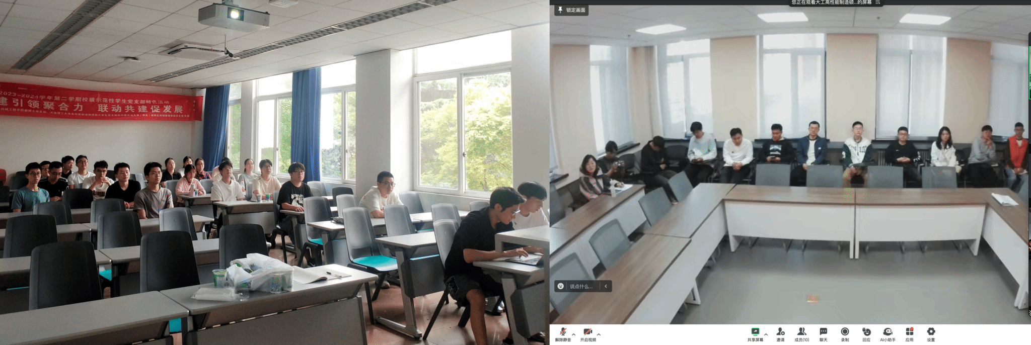 会议开始,德信体育.(中国)官方网站23级博士党支部组织委员卢旭磊同志对会议内容和大连理工大学高性能制造硕博第六学生党支部和中国石油大学(华东)机电工程学院研究生高端装备制造学生党支部进行了简介,表示中国石油大学(华东)机电工程学院研究生高端装备制造学生党支部自入选第三批全国党建工作样板支部培育创建单位以来,被央广网、人民日报、央视等多家媒体报道。大连理工大学德信体育.(中国)官方网站高性能制造硕博第六学生党支部2024年荣获校先进基层党组织(学院唯一学生支部),23年、22年连续两年创新方案立项被学校评为优秀,入选院级样板支部。双方支部建设成绩卓著,并且党建联建共建方面已经有着一定的经验和成果。