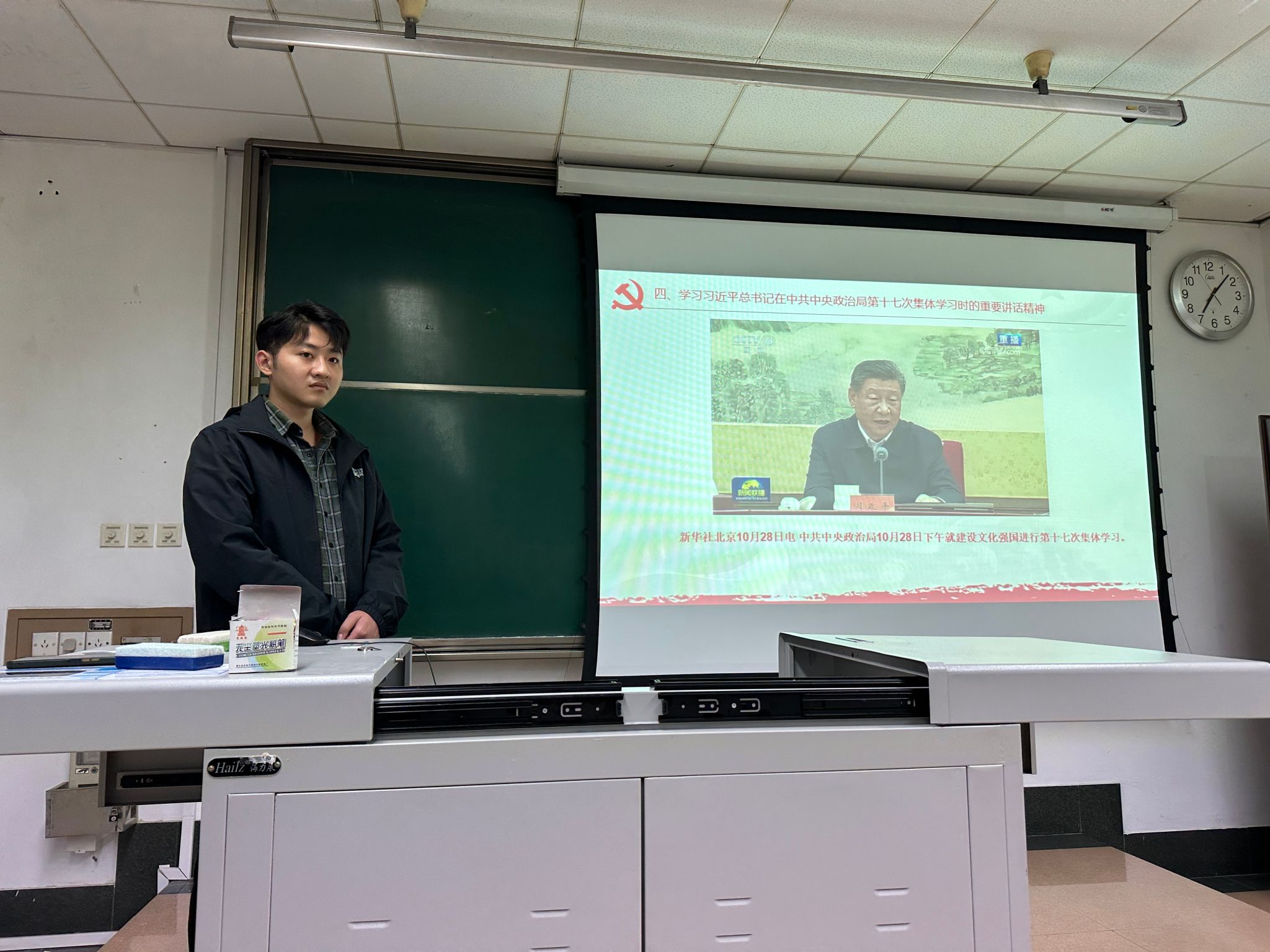 研究生之窗讯(记者 房彦江 摄影报道)2024年11月22日,德信体育.(中国)官方网站硕士第一党支部在九里校区4号教学楼J4222召开支部大会。活动内容共五项:第一项:学习习近平总书记在省部级主要领导干部学习贯彻党的二十届三中全会精神专题研讨班上的重要讲话精神;第二项:学习习近平总书记给中国国际大学生创新大赛参赛学生代表和中国海洋大学全体师生的重要回信精神;第三项:习近平总书记《促进高质量充分就业》重要文章精神。第四项:学习习近平总书记在中共中央政治局第十七次集体学习时的重要讲话精神。第五项:习近平总书记《在文艺工作座谈会上的讲话》。本次会议由张富坤同志主持。