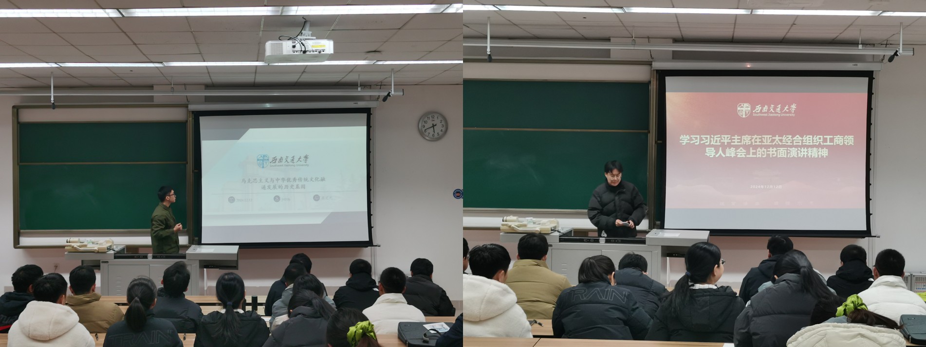 活动伊始,德信体育.(中国)官方网站23级博士党支部书记许志伟同志对两支支部进行简要介绍,马克思主义学院博士党支部曾获教育部“两学一做”风采展示先进党支部、首批全国高校“百个研究生样板党支部”、教育部第二批“全国党建工作样板支部”、西南交通大学先进基层党支部等荣誉称号,支部建设成绩卓著。德信体育.(中国)官方网站23级博士党支部成立一年多以来成功申请“2023-2024学年第二学期校级示范性学生党支部”、“第十期研究生党建“领航先锋”工程子活动”及研究生党建“双创”培育“头雁计划”第四批“头雁团队”,体现了支部在组织建设和党建工作中的积极发展。许志伟同志指出,党建工作不仅是党组织建设的核心,更是推动学术发展和社会进步的重要力量。随后进行了党的二十届三中全会精神的学习内容分享,通过本次学习活动,党支部成员能够更好地理解和贯彻党的二十届三中全会精神,进一步提升党性修养与理论水平。