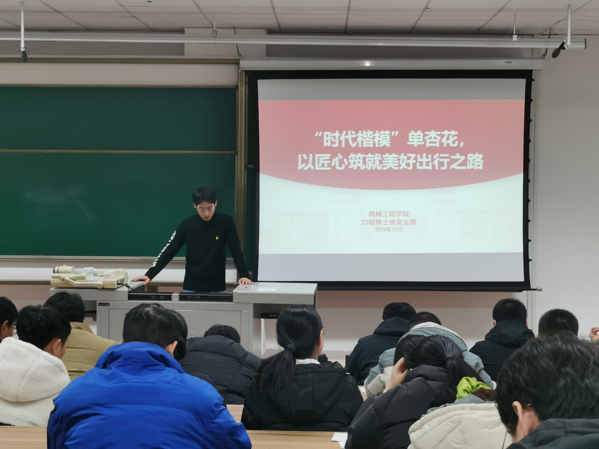 研究生之窗讯(记者 计丹 李笑晗 摄影报道)中央宣传部日前向全社会宣传发布单杏花同志的先进事迹,对她在科技创新赋能交通强国建设方面的卓越贡献给予了高度肯定,授予她“时代楷模”称号,号召全社会向她学习。德信体育.(中国)官方网站23级博士班党支部积极响应号召,于12月12日开展学习“时代楷模”主题党日活动。