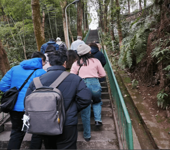 接着,老教师带着新教师,重走了“157阶”。这里原本有158个台阶,因主干道路硬化,最下边的一阶被吞噬。高耸的阶梯是交大学子的时代记忆点,老教师们回顾了当年交大学生学习生涯的“三点一线”。虽然上课与休息住所路程遥远,但大家惜时如金,忽略了外在生活的不便利,潜心钻研,从而涌现出一批批我国铁路事业的奠基人和建设者。