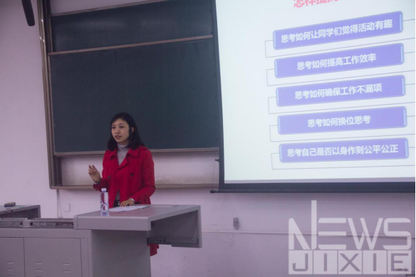 临近尾声,主持人进行了一个问答环节,同学们踊跃提问,谢老师认真解答。课程结束后,还有一些同学走向谢老师和邓老师,大家热情交流,互相解惑,为做好一个真正有能力的班委而努力着。