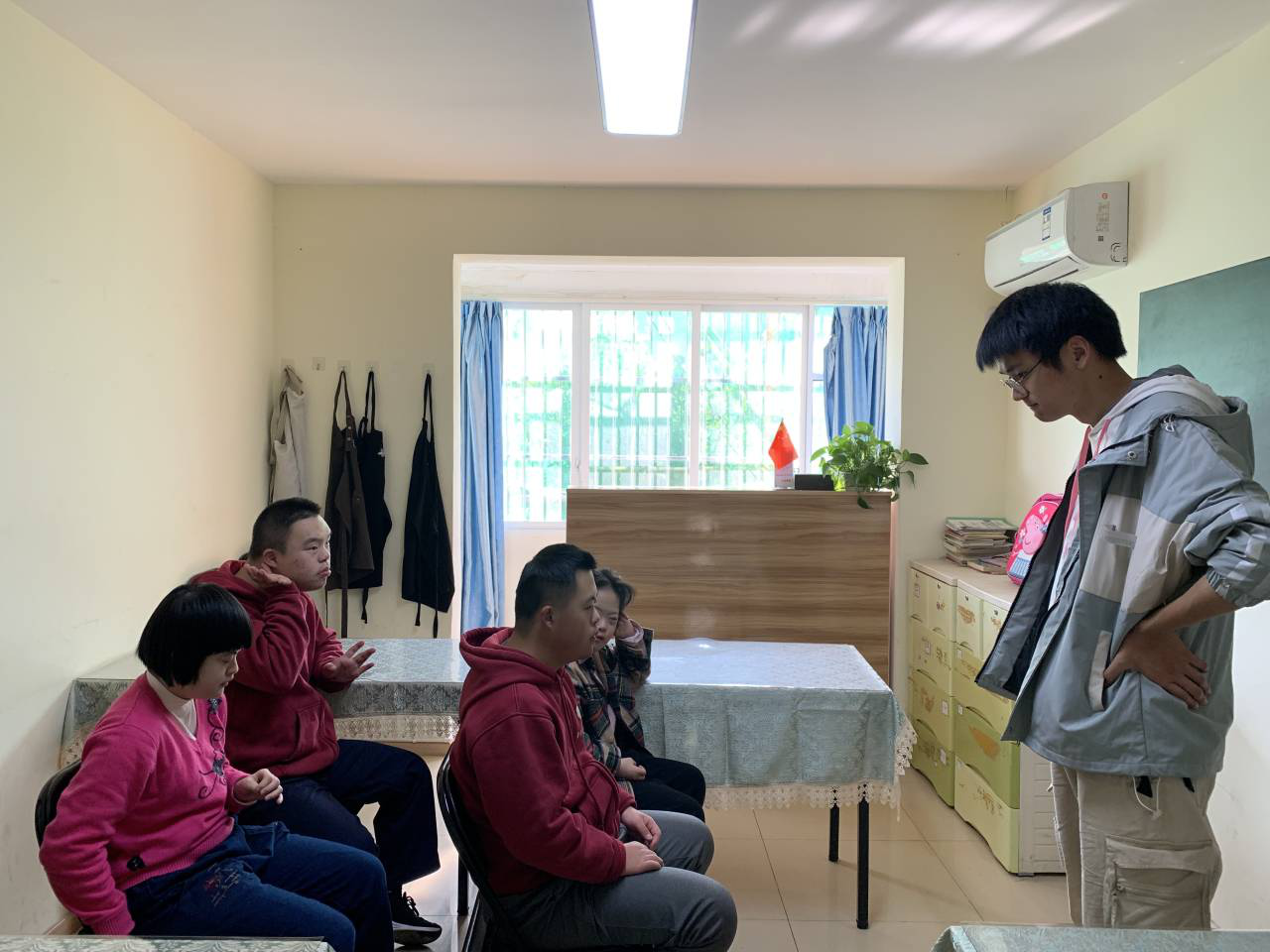 下午两点三十分,机械青协的成员到达互助中心与唐宝们见面。参加本次活动的志愿者中虽有几位新成员,但唐宝们丝毫不显羞涩之情,热情地给志愿者们进行自我介绍。虽然他们的语句略显简单,甚至说话有些不流利,但丝毫遮掩不住他们心中的喜悦之情。