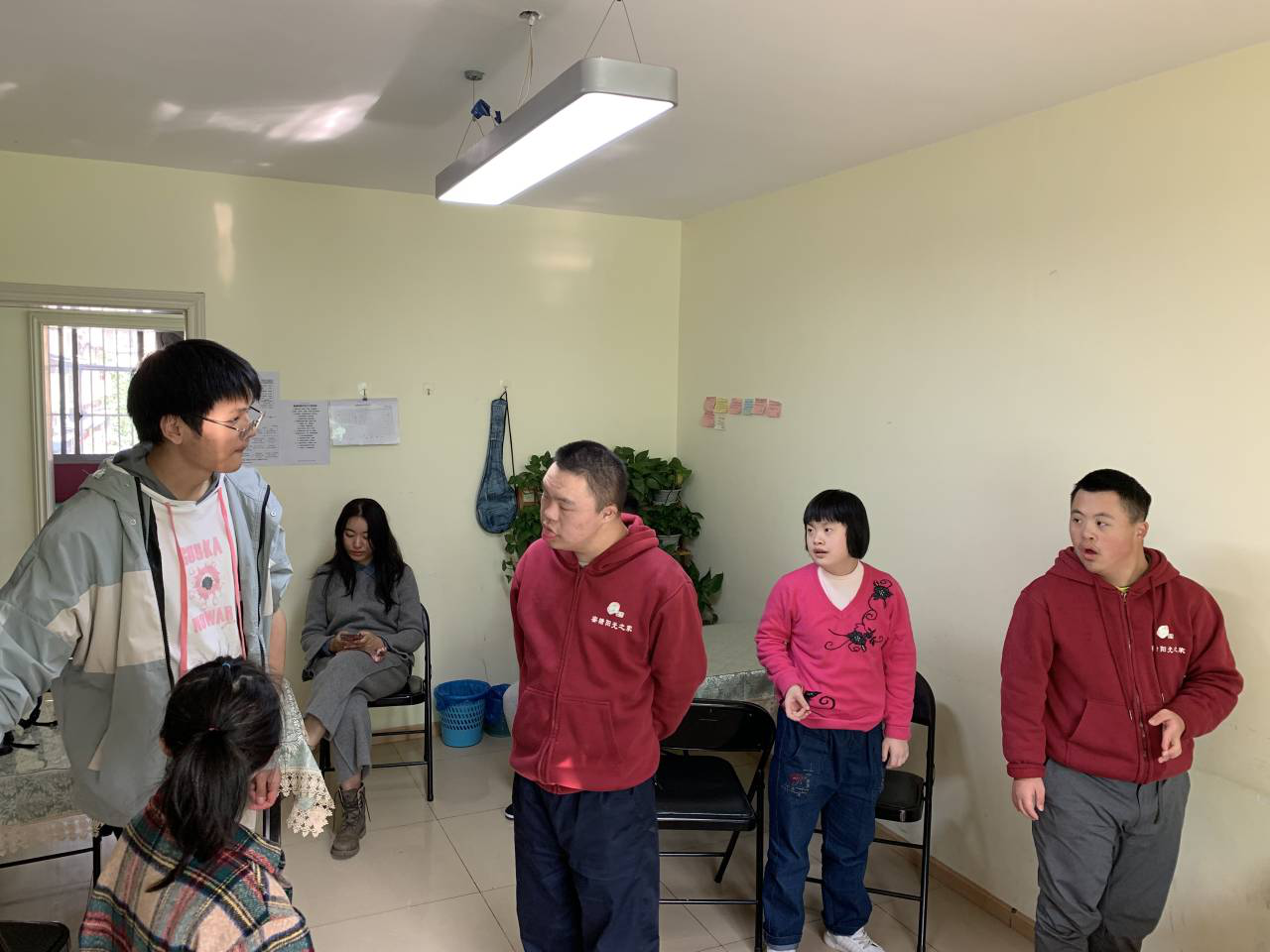 四点三十分,志愿者们与互助中心的辅导老师进行了简单交流沟通,对活动进行总结,之后与唐宝们进行合影留恋,便离开互助中心结束了下午的爱心之旅。