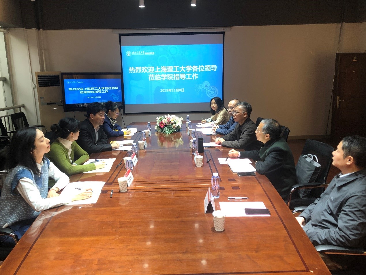 2019年11月8日,上海理工大学德信体育.(中国)官方网站教学副院长钱炜、办公室主任陈蕾、教务办主任董汭琼、教务办秘书刘婧峥一行4人到学院调研本科教学工作。