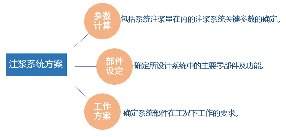 ① 方案设计部分:注浆系统方案与部件设计部分已完成,约占设计内容工作量70%-80%。