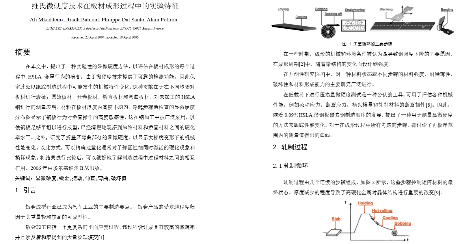 篇名为维氏微硬度技术在板材成形过程中的实验特征。