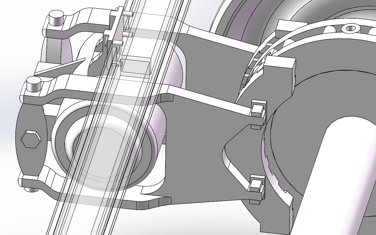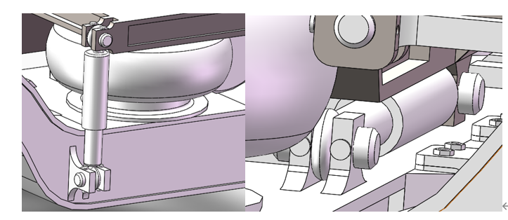 使用SOILDWORKS完成两模块铰接式转向架的零件建模和总体模型装配。