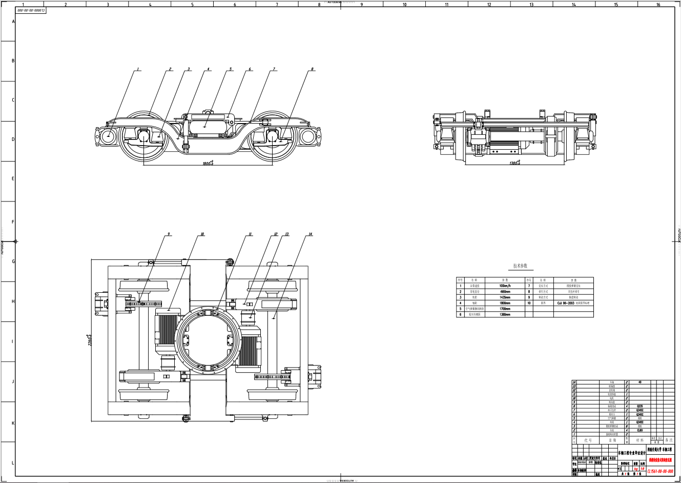 ⑥构架:采用焊接式H型构架,U型侧梁。满足转向架轻量化和一定的有轨电车低地板要求。