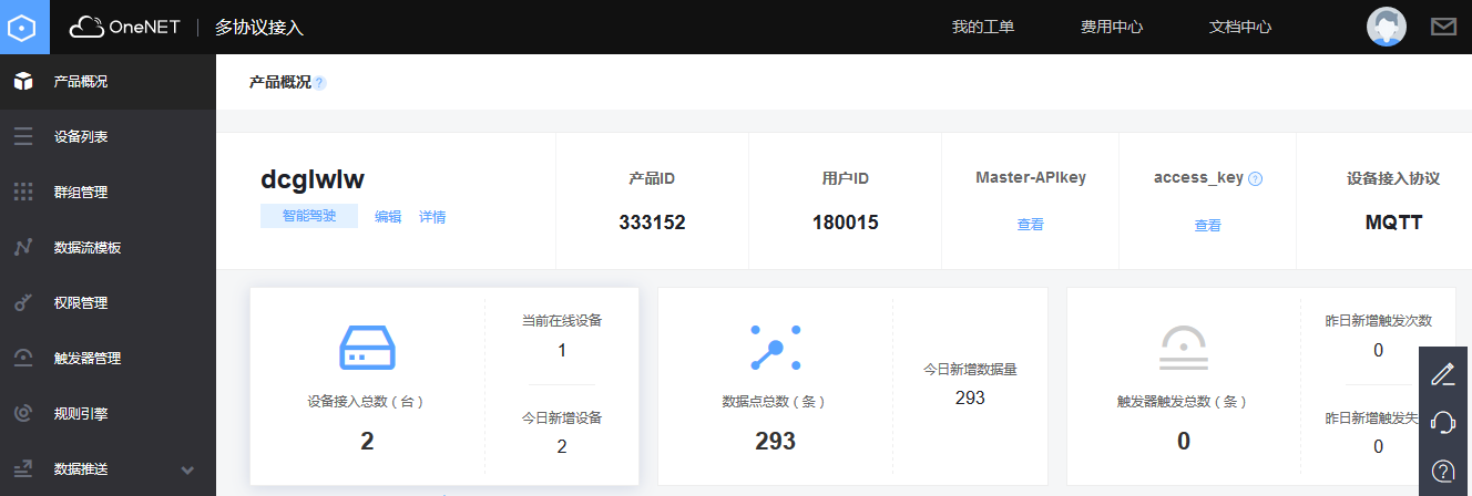5.电池管理物联网的服务器平台为OneNET移动云,目前已对该平台有了一定了解,并创建了OneNET移动云MQTT协议套件产品/设备。