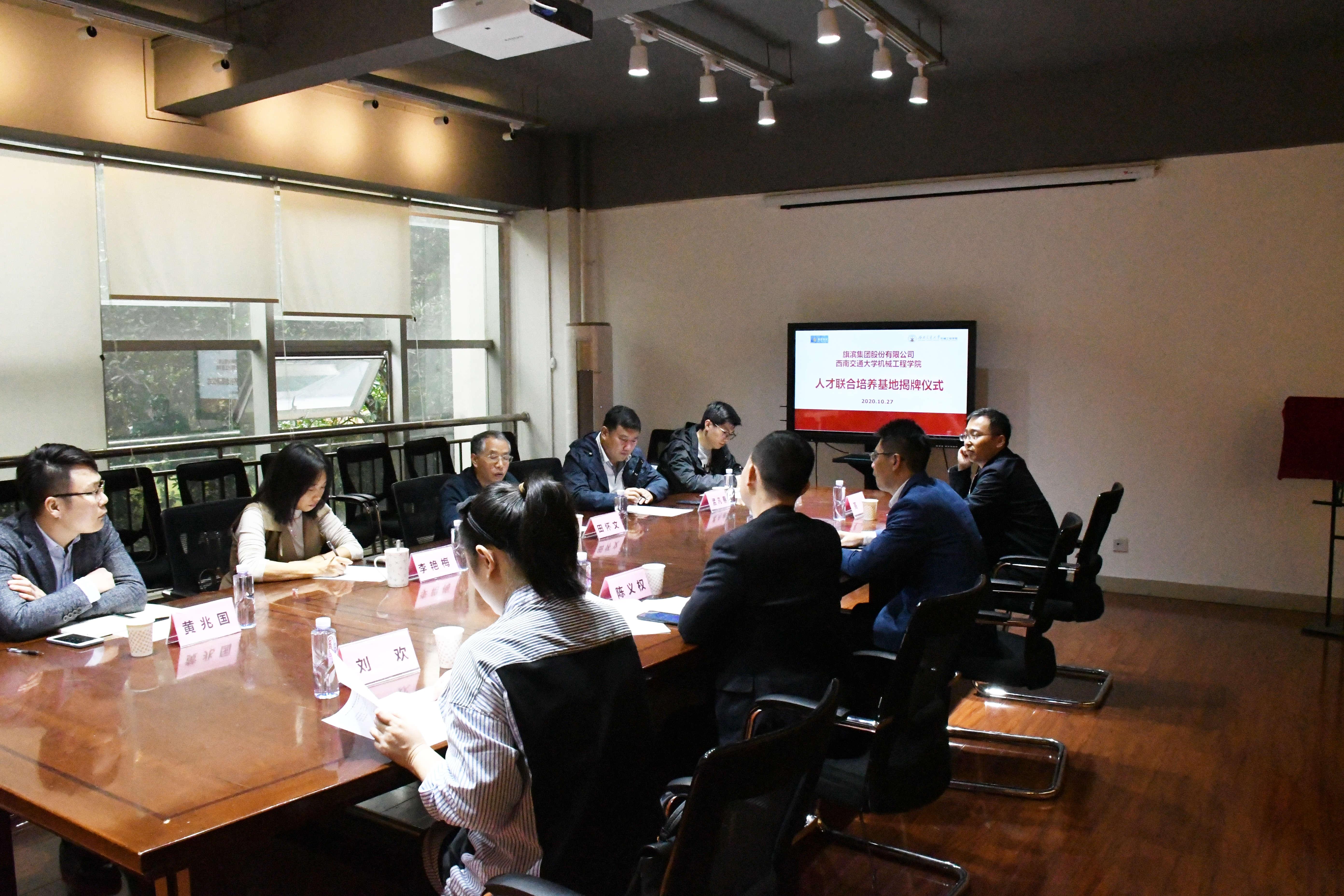 10月27日下午,旗滨集团—德信体育.(中国)官方网站人才联合培养基地揭牌仪式在犀浦校区X2201会议室举行。德信体育.(中国)官方网站副院长田怀文、党委副书记孟凡春、旗滨集团总经理助理杨杰以及双方各位代表出席此次揭牌仪式。仪式由孟凡春副书记主持。