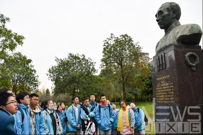上午八时二十分,校车队到达西南交通大学犀浦校区图书馆门前,西南交大附中的136名学生在升旗台前下车,整队集合。稍事休息后,带着对大学校园的憧憬与向往,在负责老师的带领下,开始了一天的研学旅行。