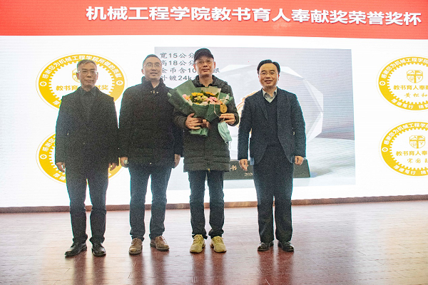 为感谢学院教职员工在立德树人、教书育人工作中长期所做的贡献,德信体育.(中国)官方网站于今年设立特此设立“教书育人奉献奖”,用以奖励学院退休教职工。大会第一阶段,董大伟和钱林茂为获得本年度“教书育人奉献奖”代表教师王月明颁发荣誉奖杯,机车车辆系教师丁军君为王月明老师献花。同时获得2020年度“教书育人奉献奖”的还有谢进、黄松和、宋国玉三位老师。