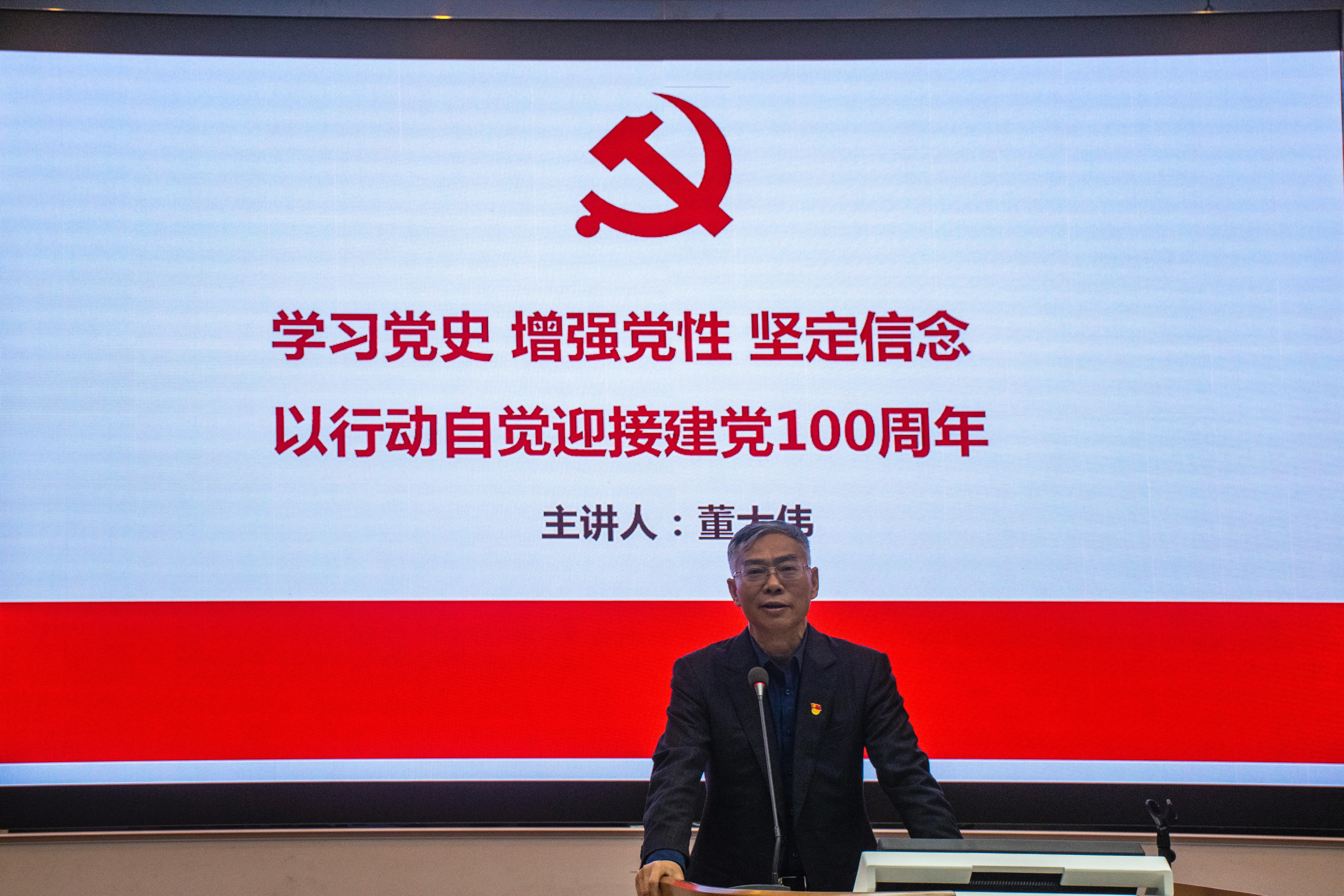 “我们党的历史,就是一部不断推进马克思主义中国化的历史,就是一部不断推进理论创新、进行理论创造的历史!”大会伊始,董大伟书记以学习党史、增强党性、坚定信念为题,结合自己多年工作生活的所见所闻、所历所感,用生动语言、鲜活事例、真挚情感讲述了中国共产党成立以来的重大党史事件、取得的辉煌成就等内容,号召全院师生以行动自觉迎接建党100周年。董书记指出,学习党史首先要掌握党史的发展脉络,要认清发展主线既马克思主义在中国的传播。