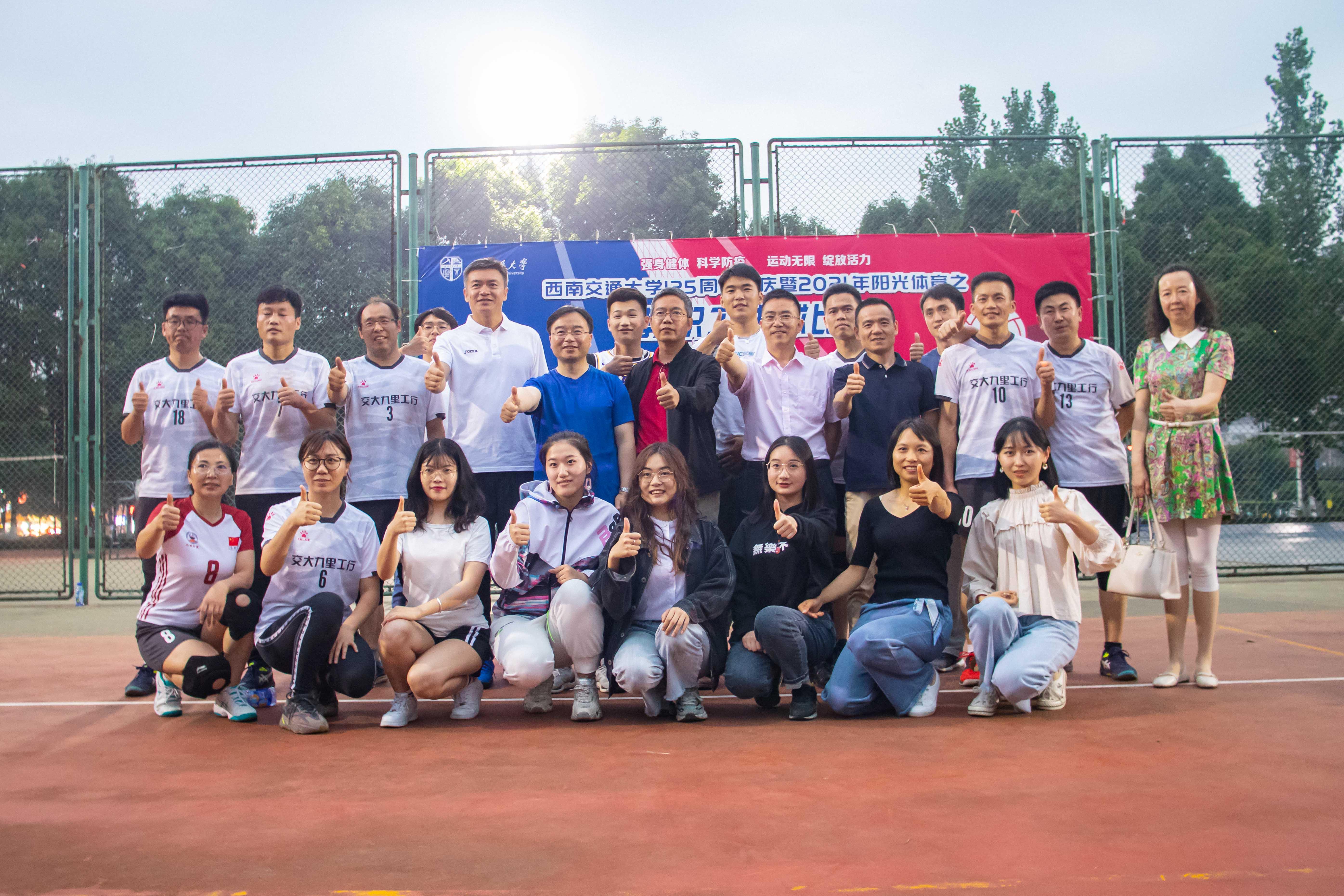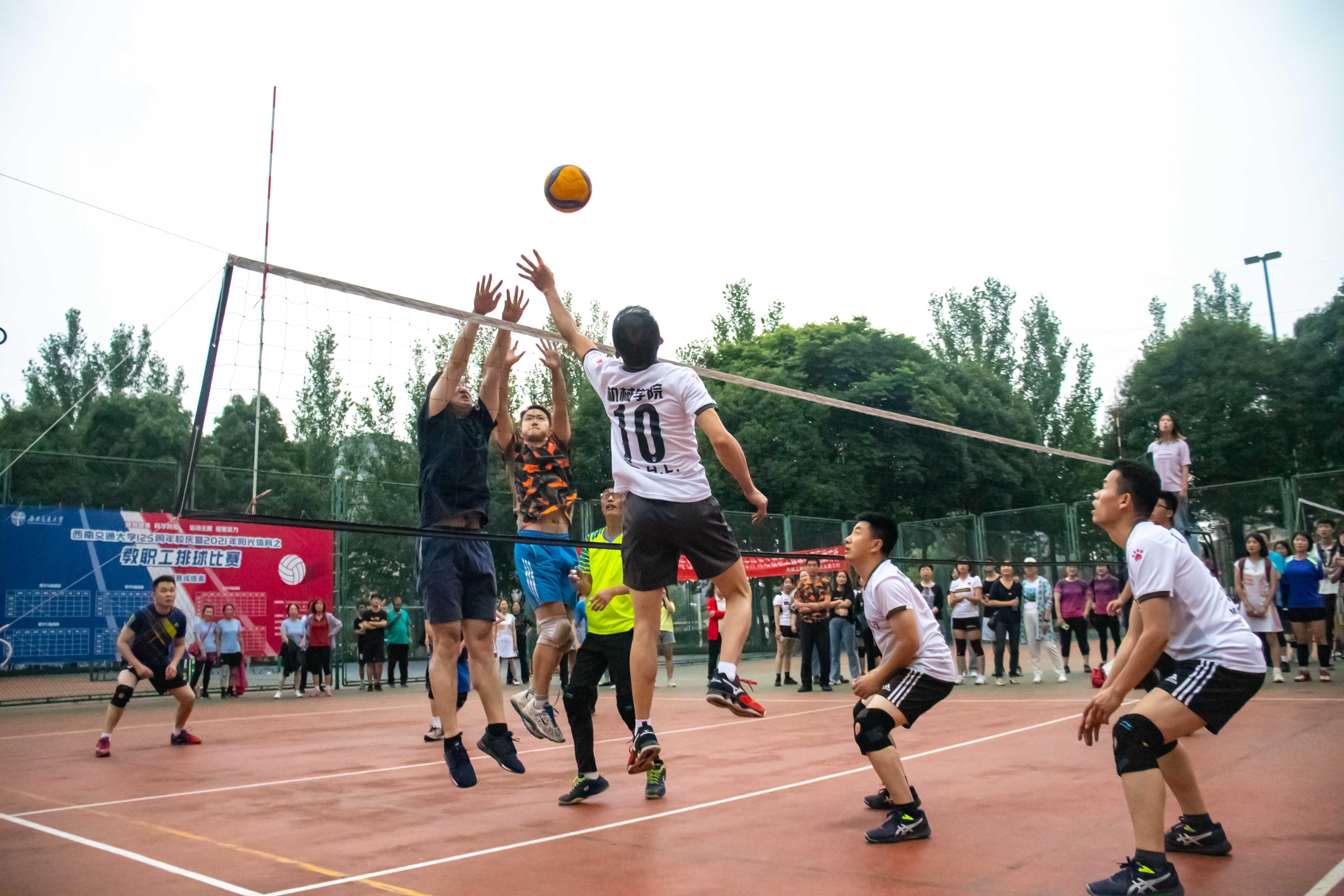 弘扬体育精神,展现教育风貌。为了丰富教职工的校园文化生活,增强教职工身体素质,使广大教职工保持旺盛的精神状态,做好教育教学工作,在校领导的大力支持下,近日我校举行了2021年春季教职工排球赛。2021年5月20日下午18点30分于西南交通大学犀浦校区北区排球场,机械vs机关,比赛一触即发。