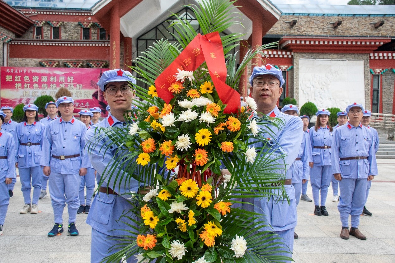 参观完毕后,大家向革命先烈雕像敬献花篮,程军副书记带领大家面对党旗重温入党誓词,表达对革命先烈们的无限缅怀和砥砺前行的决心。