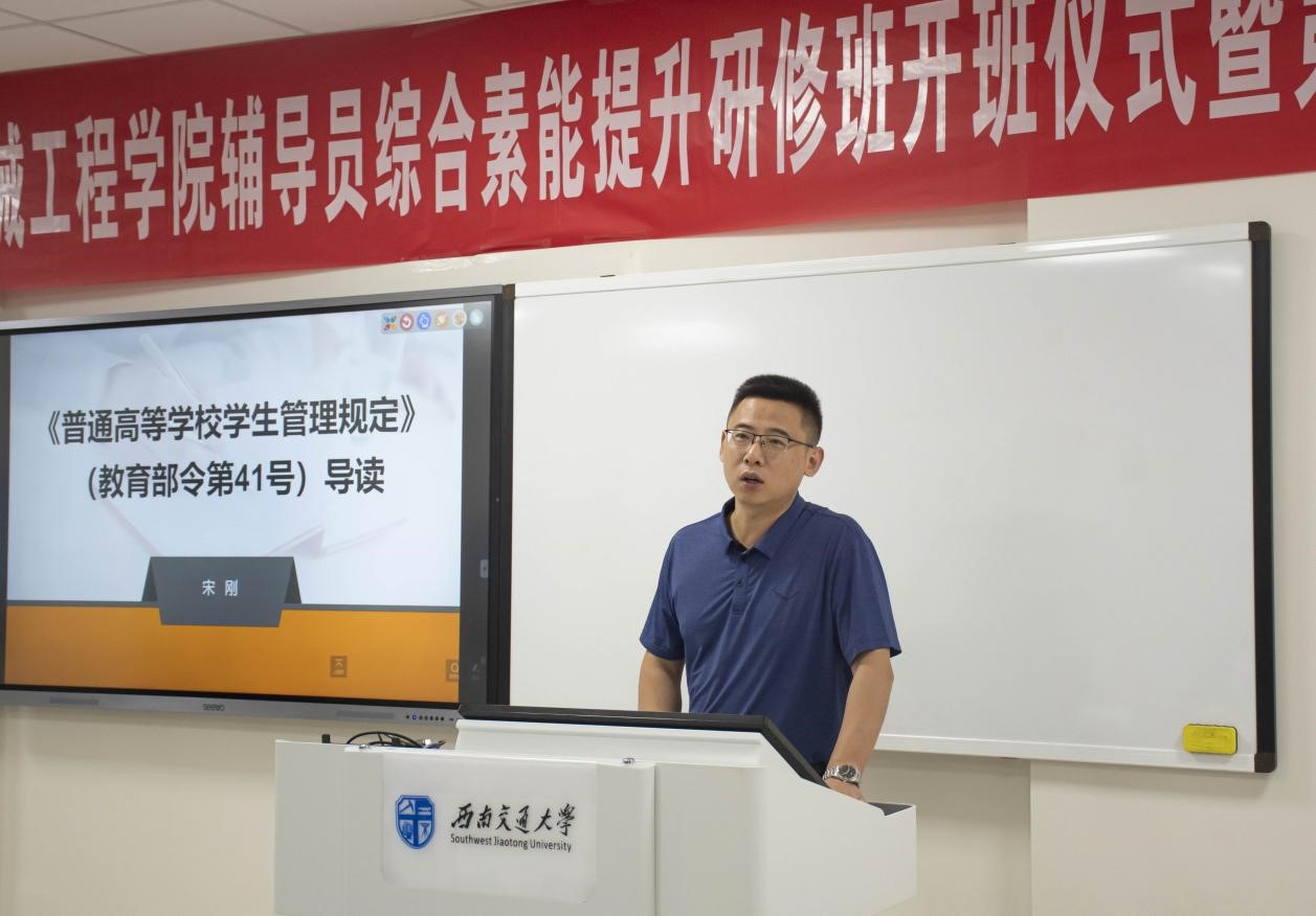 2021年7月16日上午,德信体育.(中国)官方网站辅导员综合素能提升研修班开班仪式暨第一期专题培训在西南交通大学犀浦校区X30302顺利进行。西南交通大学学生工作部部长高平平、副部长宋刚、副部长李国芳、德信体育.(中国)官方网站党委书记袁艳平、党委副书记程军以及德信体育.(中国)官方网站辅导员出席本次活动。学院党委副书记孟凡春主持。
