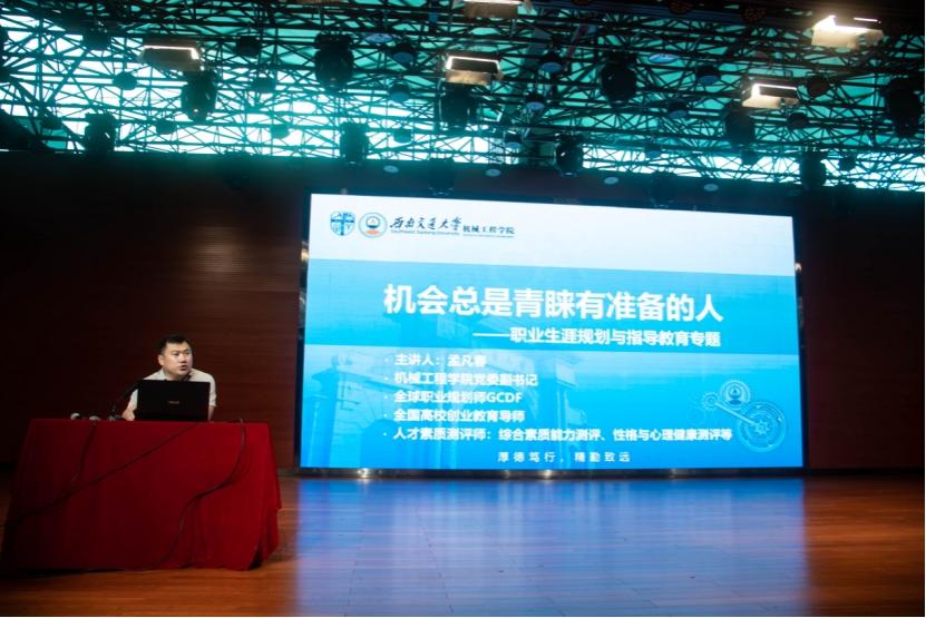 随后,孟书记详细讲述了职业生涯规划的方法与步骤,一一列举大学各阶段生涯规划任务与重点,帮助新入校的2021级交大学子更快的融入到大学的新生活中去。同时,学校也会为同学们提供帮助、提供机会并为同学们排忧解难,老师们会尽最大努力帮助学生做好职业规划,全力以赴地支持同学们顺利走完四年大学路。