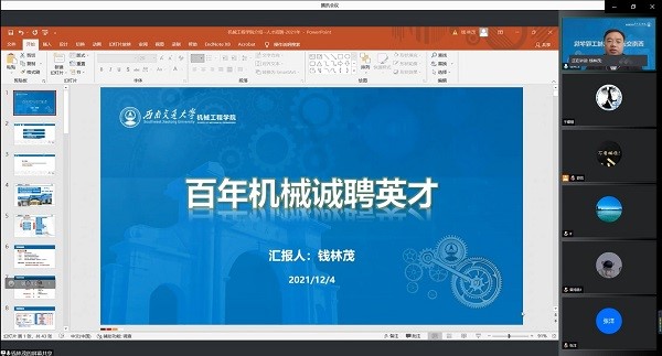 感谢各位领导、老师和青年学者对本次论坛的大力支持。通过本次论坛,我院成功向国内外青年学者推介了学校的各项引才政策和学院的优势学科平台,达到了论坛的预期目的。至此,西南交通大学2021年“交天下菁英,通宇内鼎甲”学者论坛机械工程学科分论坛圆满结束。