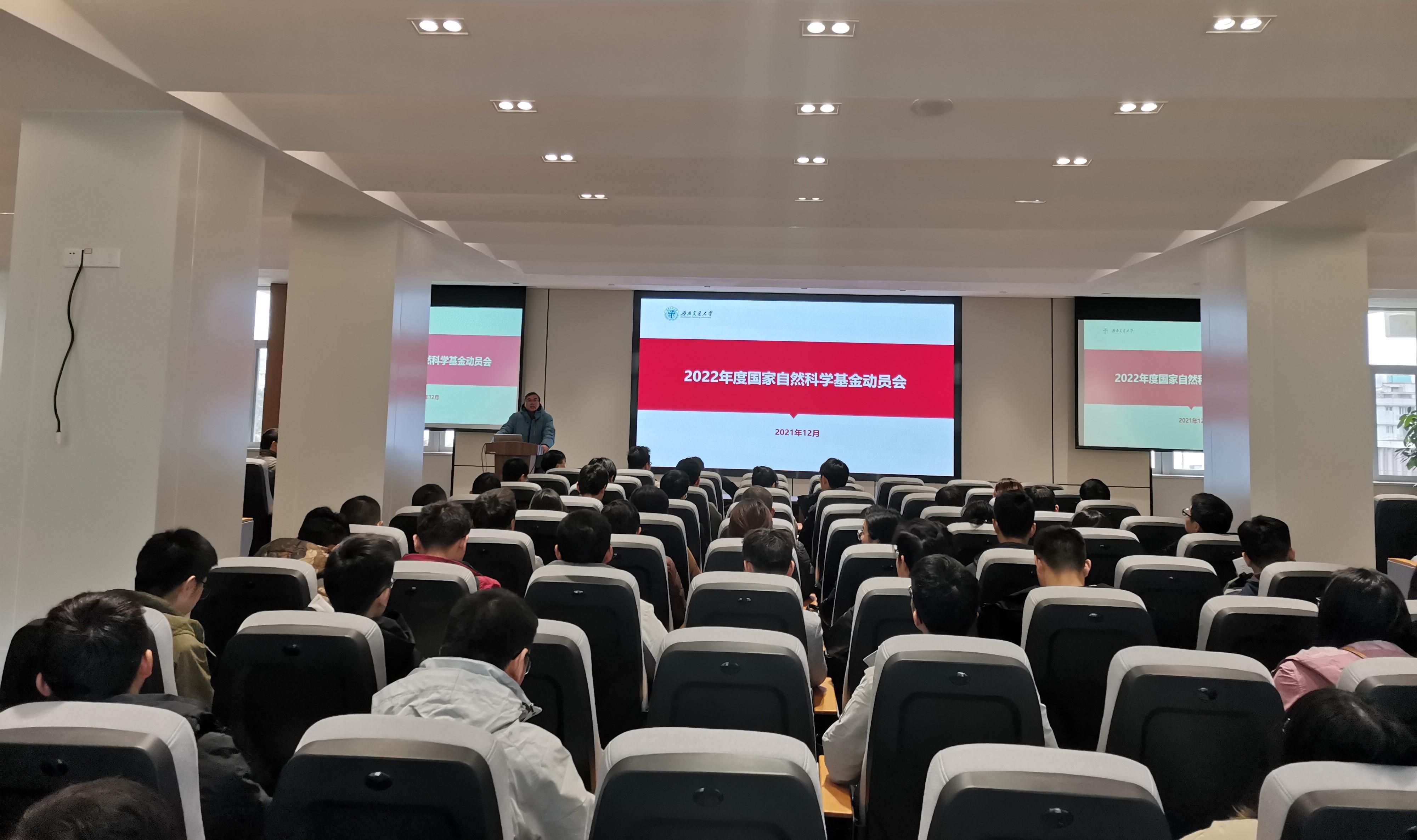 2021年12月8日,德信体育.(中国)官方网站在九里校区2530学术报告厅,召开了2022年度国家自然科学基金动员会。学院高度重视本次动员会,特别邀请了科学技术发展研究院马霖副院长、基础研究科刘海龙科长,学院党委书记袁艳平教授、院长钱林茂教授、优秀青年教师陈磊研究员为大家分享基金申报经验,动员会由学院副院长丁国富教授主持。