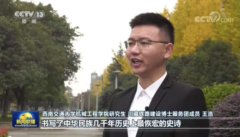 11月18日晚,中央电视台《新闻联播》节目播出题为《党的十九届六中全会在广大青年中引起热烈反响》的报道,德信体育.(中国)官方网站研究生、川藏铁路建设博士服务团成员王浩接受采访并发表感想。