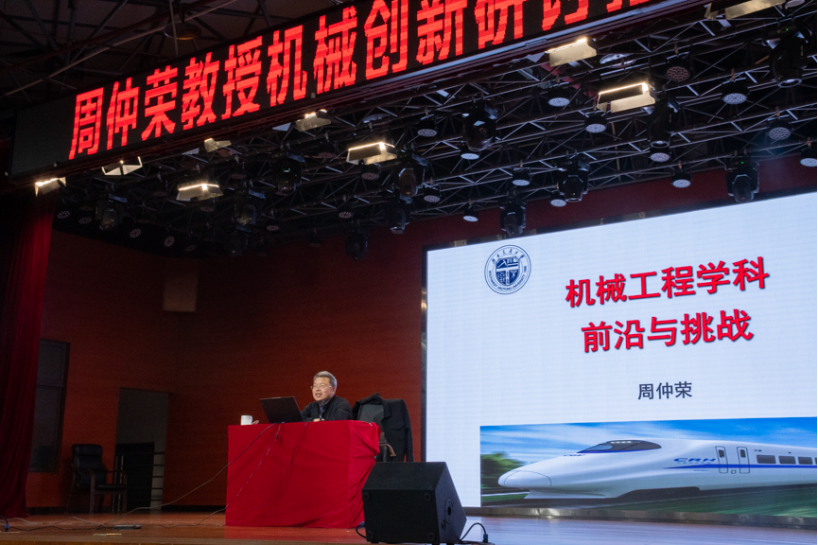 会议开始,周校长受到了全体同学的起立鼓掌欢迎。接下来他从机械工程学科的基本概况,学科发展前沿与挑战和创新能力培养及案例分析三个方面向同学们进行介绍。