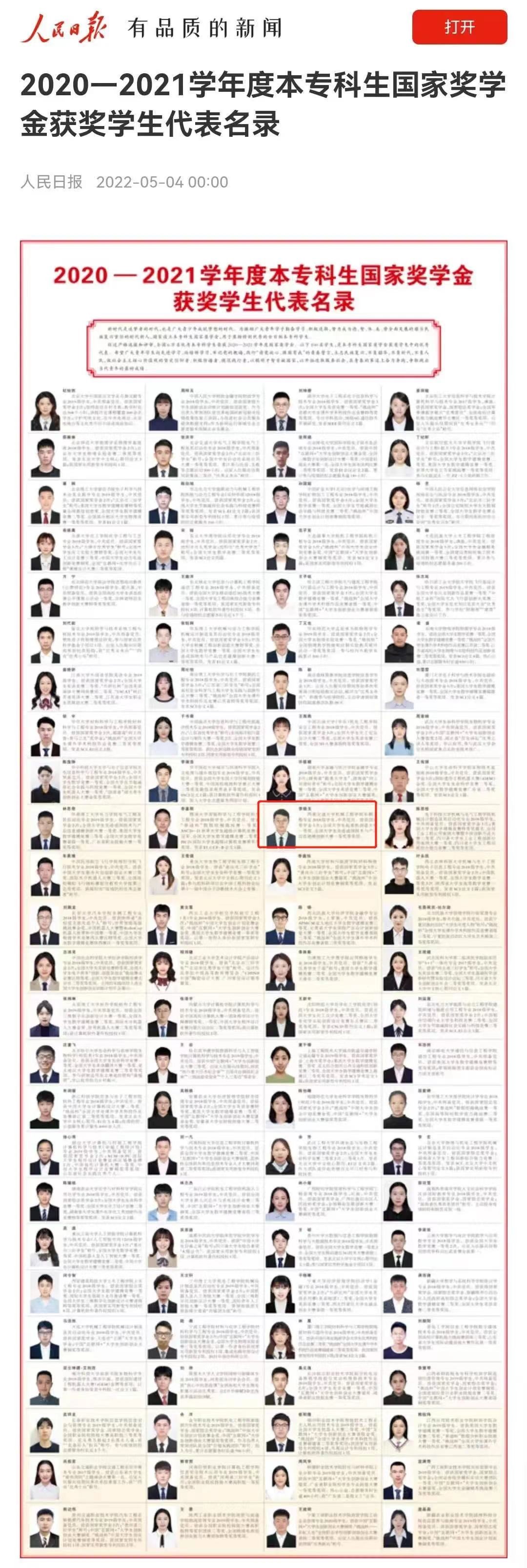 2022年5月4日,为激励广大青年学子勤奋学习、积极进取,努力成为德、智、体、美、劳全面发展的堪当民族复兴重任的时代新人,人民日报刊发本专科生国家奖学金获奖学生100名代表名录,德信体育.(中国)官方网站2018级本科生李晓玉从全国6万名国家奖学金获得者中入选。