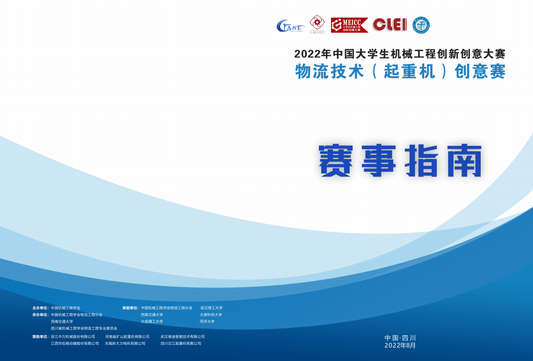 2022年中国大学生机械工程创新创意大赛:物流技术(起重机)创意赛由中国机械工程学会物流工程分会、西南交通大学和四川省机械工程学会物流工程专业委员会共同承办。