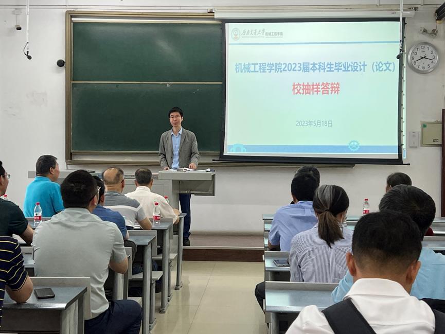 2023年5月18日上午,德信体育.(中国)官方网站2023届本科生毕业设计(论文)校抽样答辩在犀浦校区七号教学楼顺利举行。学院党委书记袁艳平,副院长田怀文,质保委主任程文明,质保委副主任杨美传,各系所主任、专业负责人及答辩学生指导教师参加了本次答辩。
