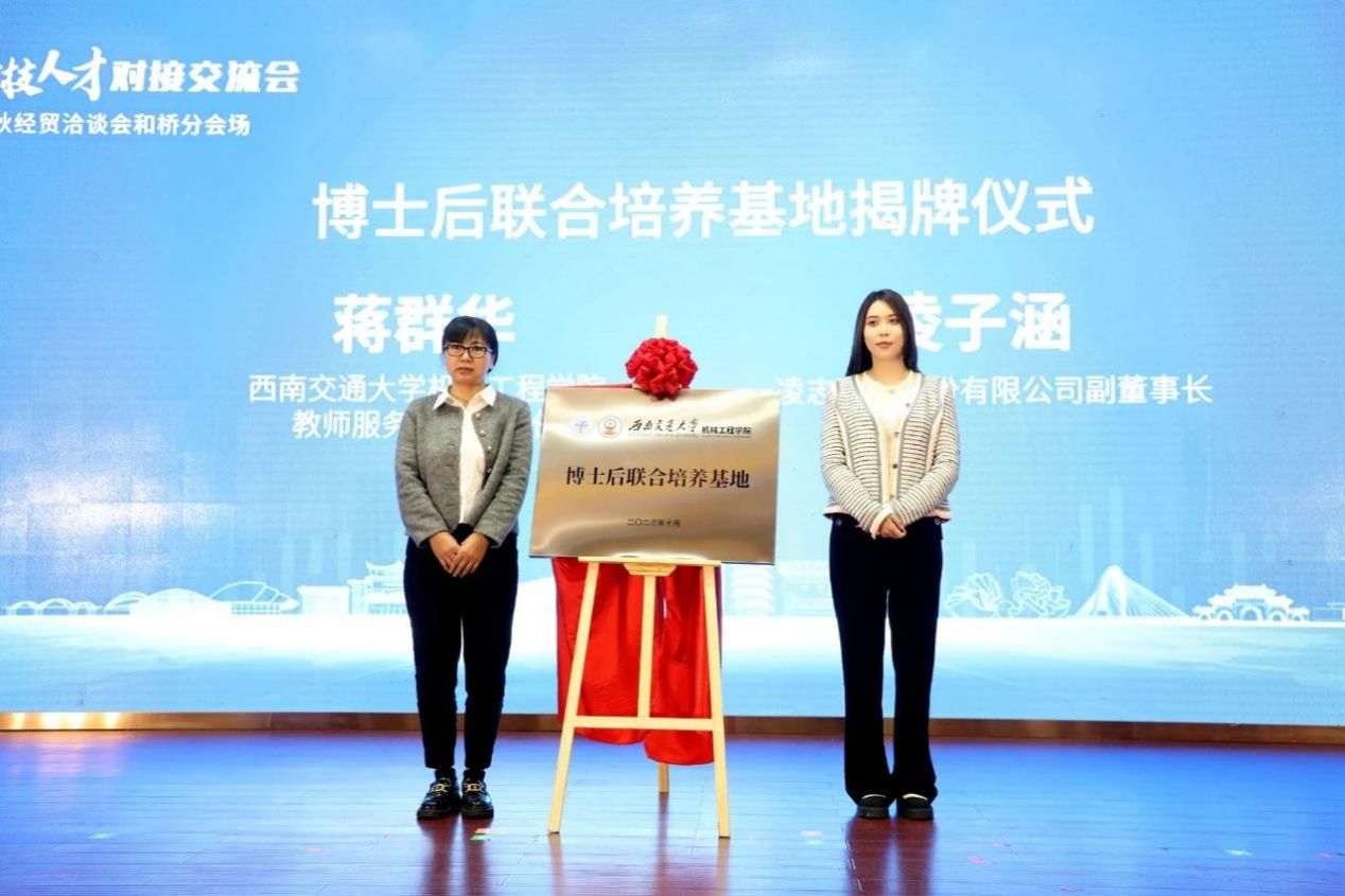 德信体育.(中国)官方网站教服办主任蒋群华和凌志环保股份有限公司副董事长凌子涵为博士后联合培养基地揭牌。