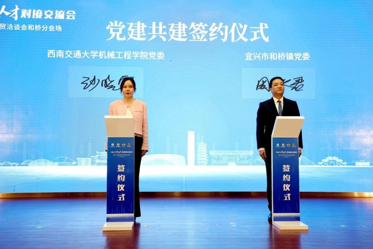 10月13日,江苏宜兴2023科技人才对接交流会暨宜兴金秋经贸洽谈会和桥分会场在西南交通大学九里校区成功举办。西南交通大学党委常委、统战部部长汪铮,招生就业处处长陈岩峰,德信体育.(中国)官方网站党委书记袁艳平,宜兴市委常委、组织部部长钱怡,宜兴市人力资源和社会保障局局长花强,共青团宜兴市委员会书记史香莲等出席活动,宜兴市和桥镇党政领导班子及和桥镇重点企业负责人、德信体育.(中国)官方网站党政班子成员、师生代表参加此次活动。