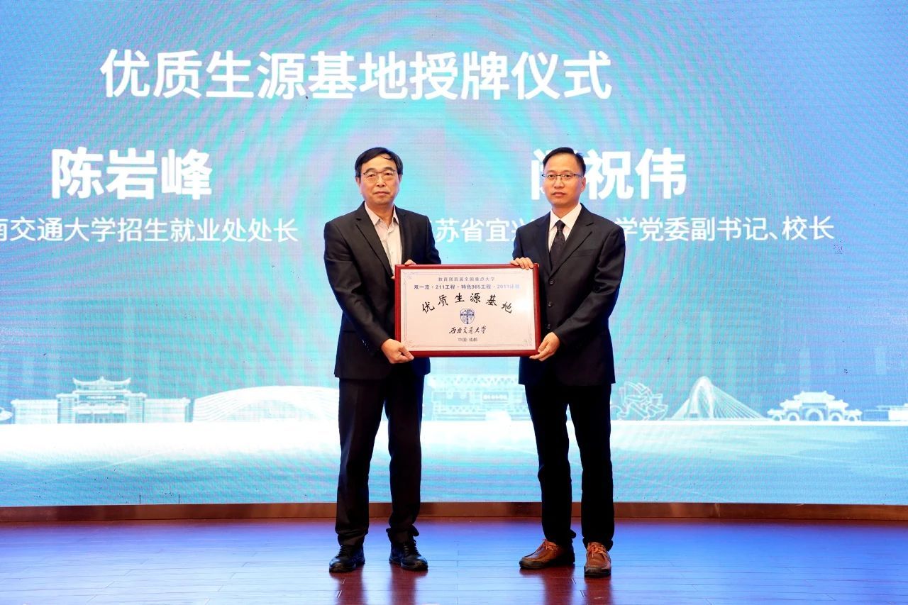 西南交通大学招生就业处处长陈岩峰代表学校向江苏省宜兴第一中学授予优质生源基地。