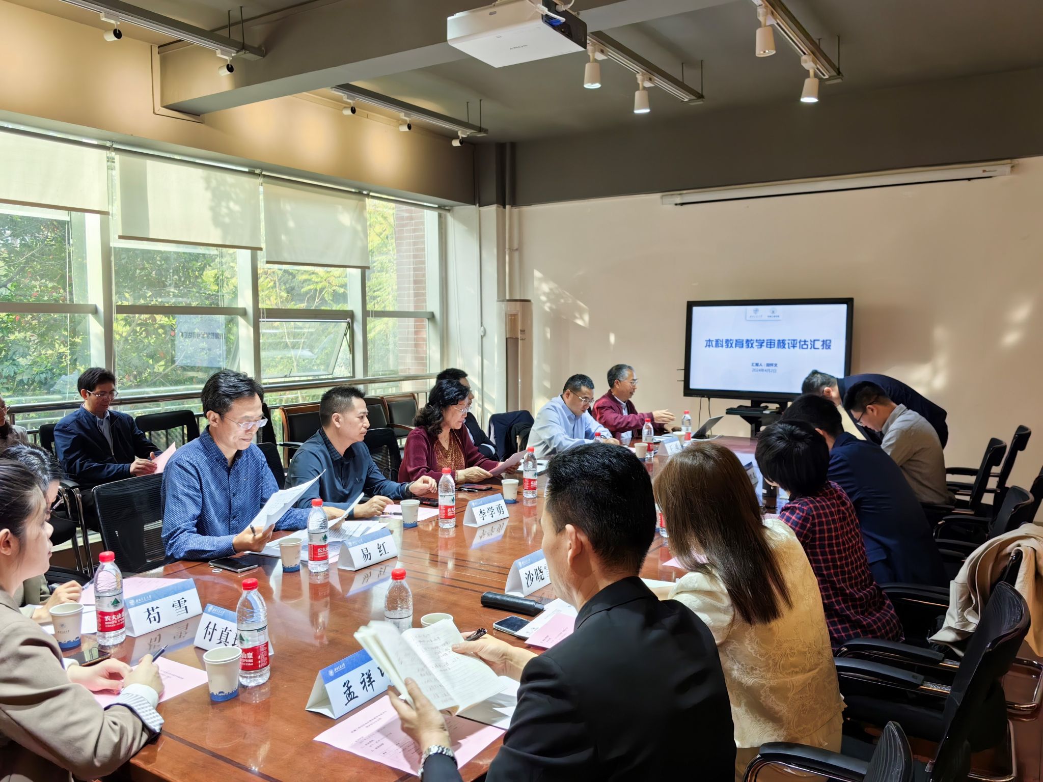 上午9点,学院本科教育教学审核预评估汇报会在犀浦X2201举行,学院党委书记袁艳平、党委副书记曾东红、党委副书记沙晓雪、副院长田怀文、副院长刘伟群,院长助理、系主任、专业负责人等参加了会议。