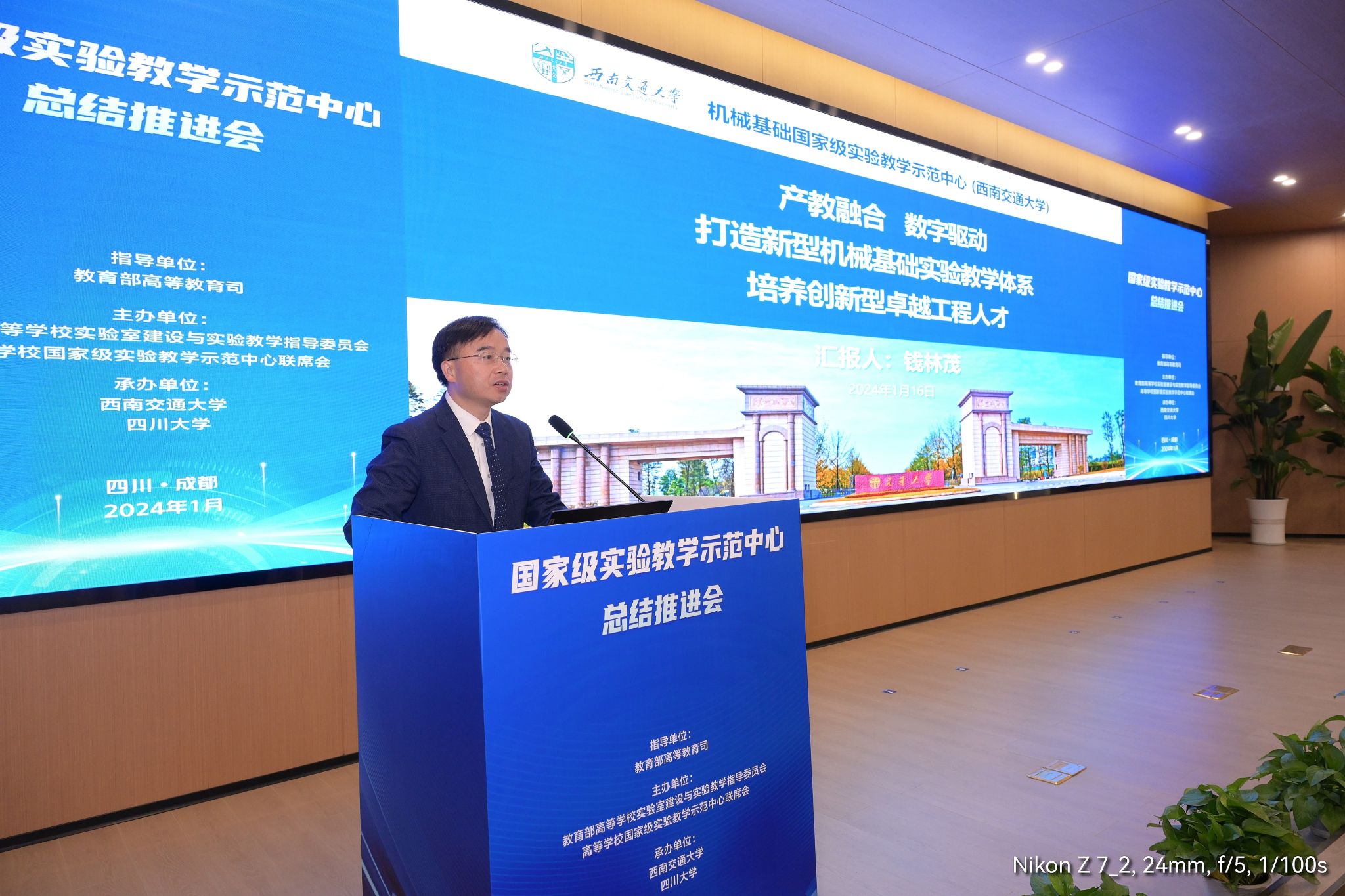 机械基础实验教学示范中心作为我校8个国家级实验教学示范中心中唯一的一个典型案例(四川省共有39个国家级实验教学示范中心,其中4个实验中心获评典型案例),由德信体育.(中国)官方网站院长钱林茂教授以题为“产教融合,数字驱动,打造新型机械基础实验教学体系,培养创新型卓越工程人才”的报告,向各位专家介绍了机械基础实验教学示范中心的建设和发展情况。