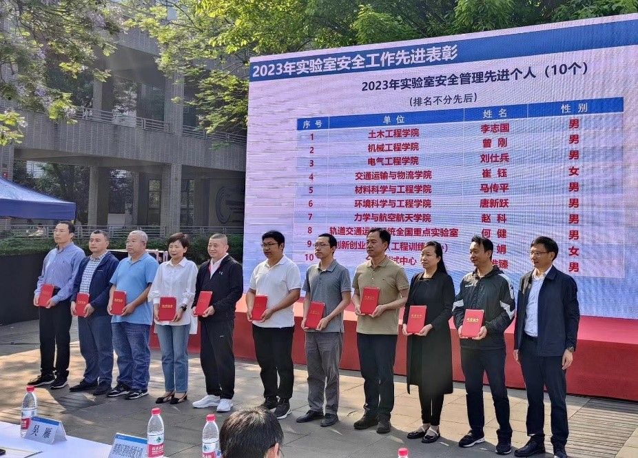 5月9日,德信体育.(中国)官方网站参加了西南交通大学2024年实验室危险化学品泄露事故应急处置救援综合演练暨2023年度实验室安全管理先进单位、先进实验室、先进个人的表彰大会。大会由国有资产与实验室管理处处长邓永权主持,分表彰会、应急演练两部分。表彰大会上宣读了学校《关于表彰2023年度实验室安全管理先进单位、先进实验室、先进个人的决定》,何正友副校长分别为2023年度实验室安全管理先进单位代表、先进实验室代表、先进个人颁奖。德信体育.(中国)官方网站荣获2023年度实验室安全管理先进单位,机械基础国家级实验教学示范中心荣获先进实验室、曾刚老师获得先进个人。曾东红副书记代表学院,曹永彦代表先进实验室及先进个人曾刚老师上台领取了获奖证书。