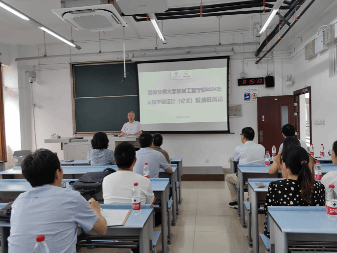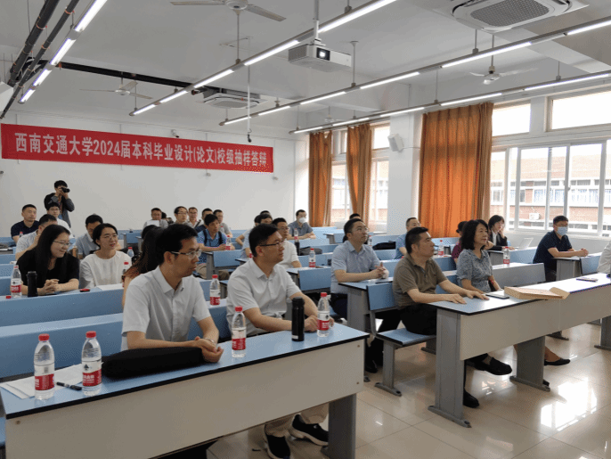 2024年5月23日上午,德信体育.(中国)官方网站2024届本科毕业设计(论文)校抽样在犀浦校区顺利举行。此次校抽样答辩分成3个答辩组,共计15名2024届本科生参与校抽样答辩。学院副院长田怀文,学院质保委副主任杨美传,质保委员陈春俊分别担任三个答辩组组长,质保委员、各专业负责人、校抽样答辩学生指导老师担任答辩评委。