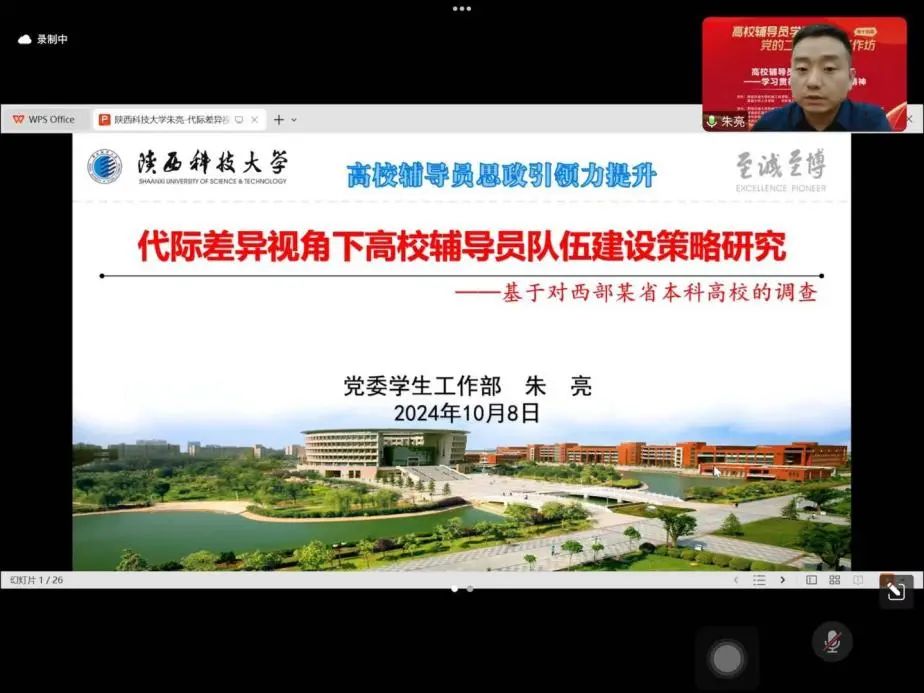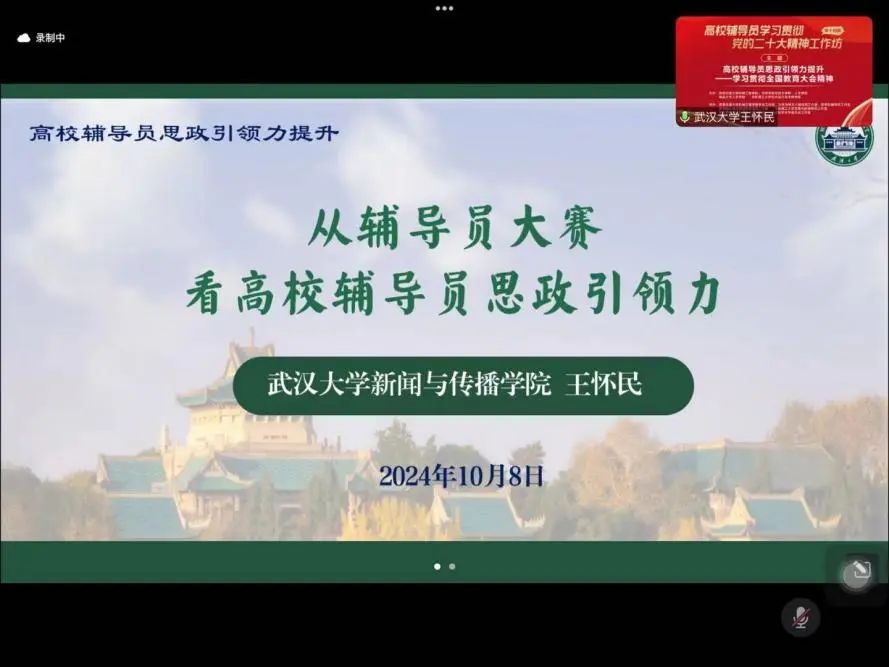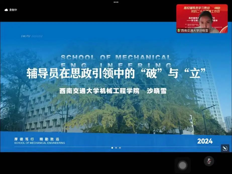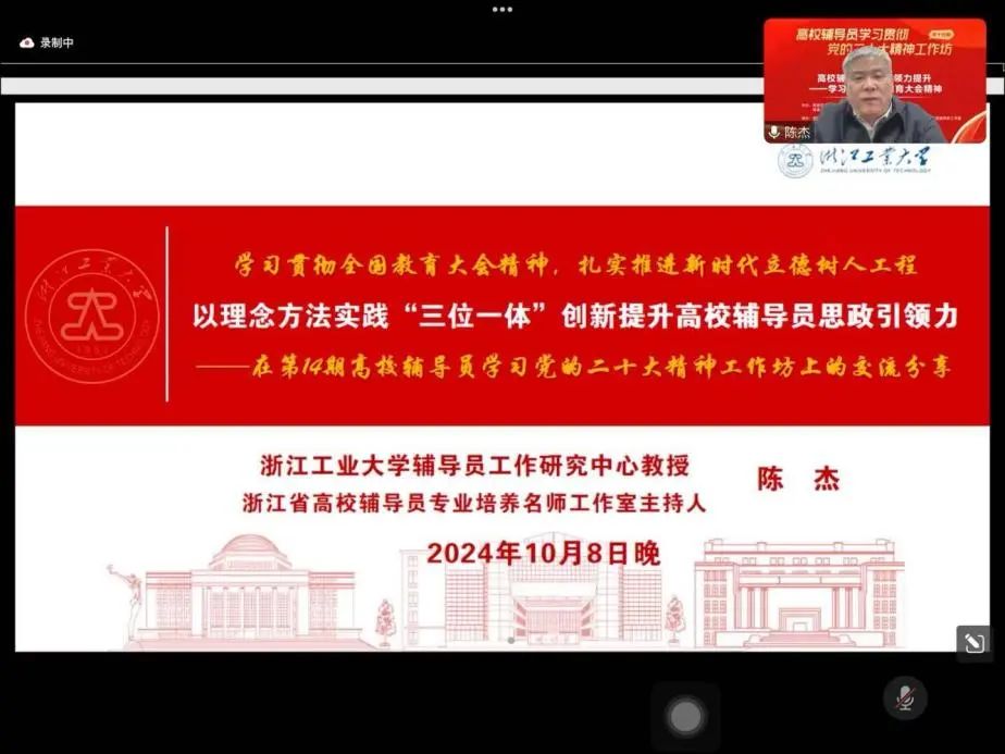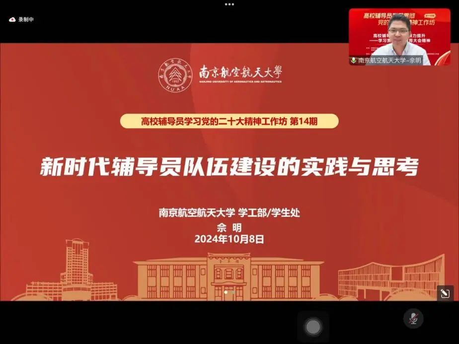 2024年10月,以“高校辅导员思政引领力提升——学习贯彻全国教育大会精神”为主题的高校辅导员学习贯彻党的二十大精神工作坊第14期在线上顺利举办。