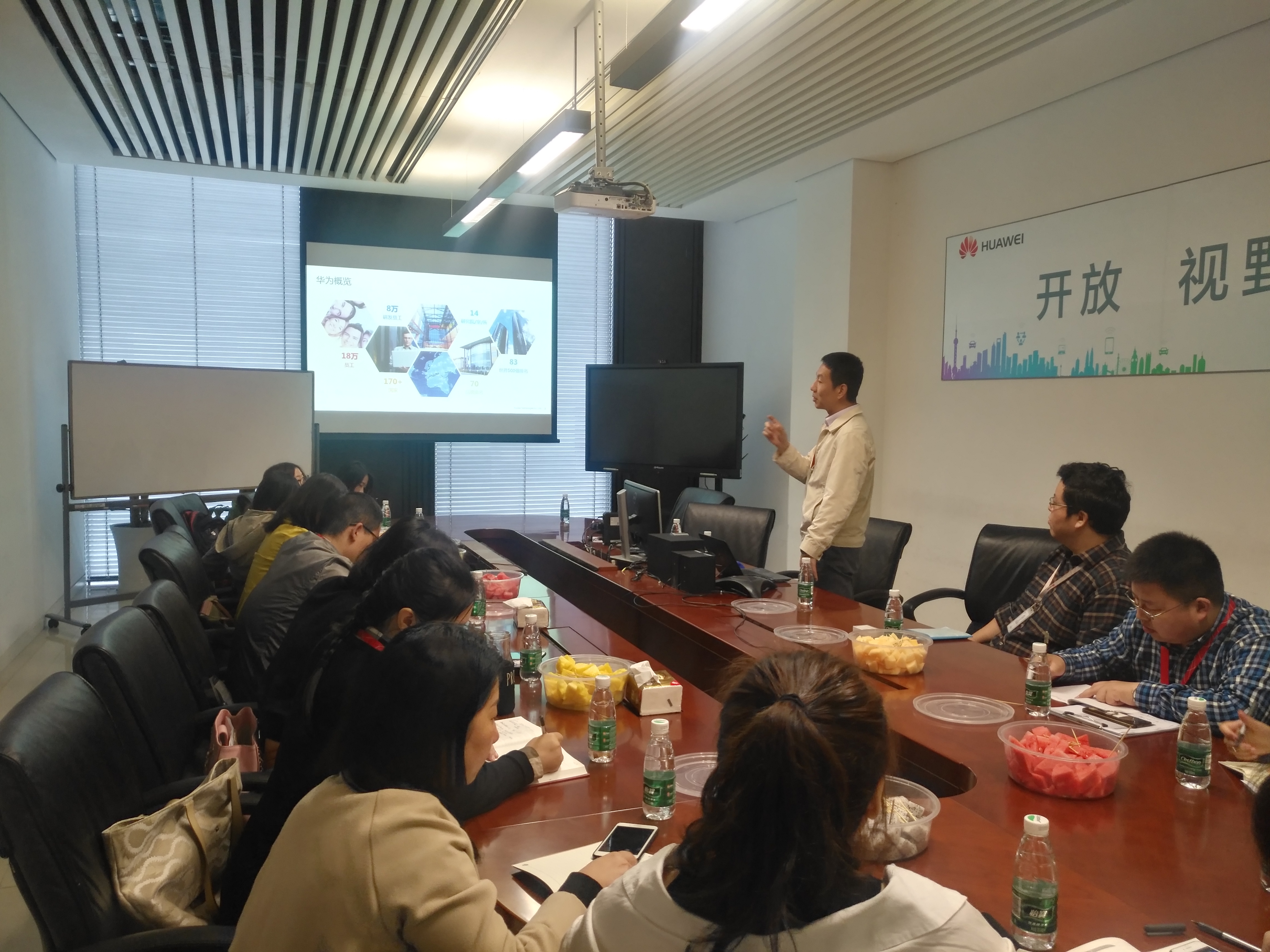 随后,学生工作组党支部一行人来到会议室,与华为人力资源部其他同事一起召开座谈会。会上,范学森总监详细介绍了华为“把数字世界带入每个人、每个家庭、每个组织,构建万物互联的智能世界”的企业愿景和“以客户为中心,以奋斗者为本,长期艰苦奋斗,坚持自我胜利”的企业价值观。“人力资本增值优先财务资本增值”的企业人才观。详细介绍了“胸怀世界、坚韧平实、洞见新知”的华为用人标准。