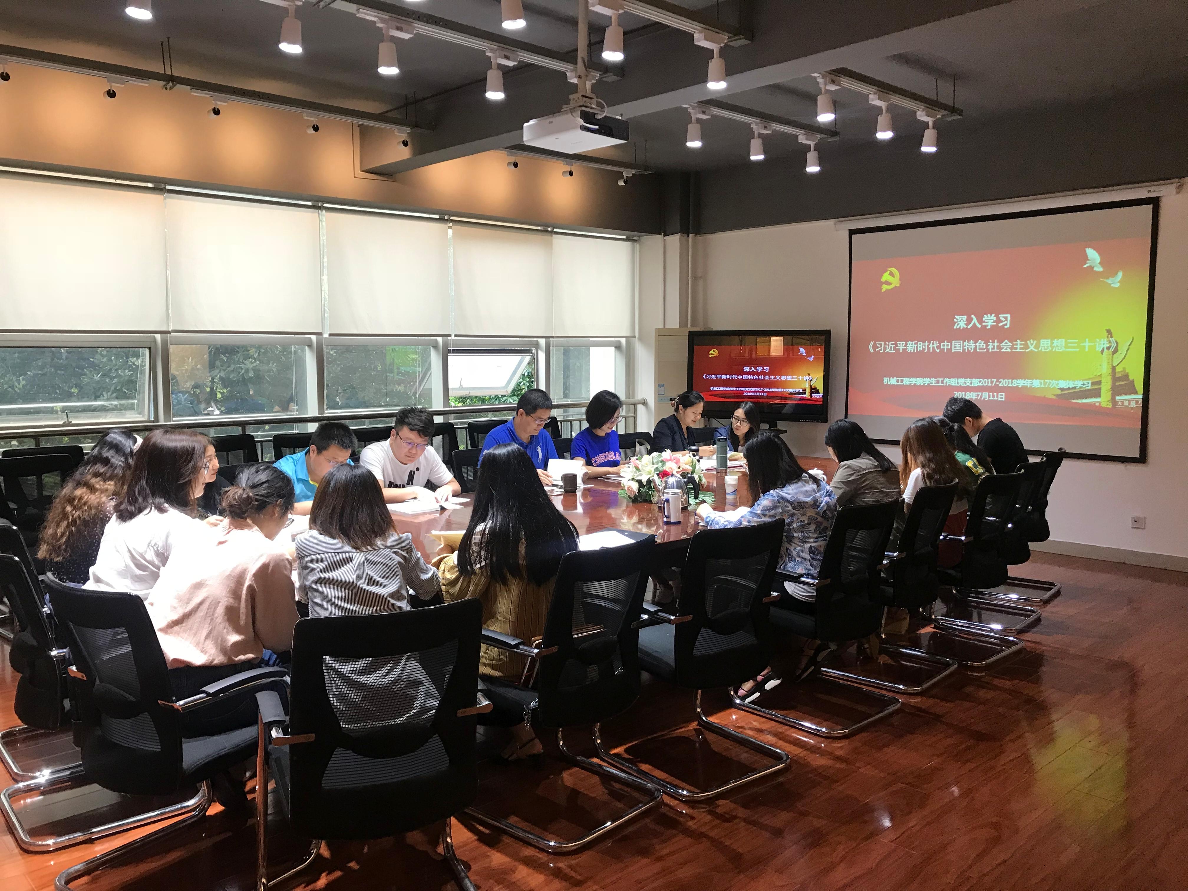 2018年7月11日下午14:30,德信体育.(中国)官方网站学生工作组党支部在犀浦校区X2201会议室开展了《习近平新时代中国特色社会主义思想三十讲》专题学习活动,暨德信体育.(中国)官方网站学生工作组党支部2017-2018学年第18次“二号楼下午茶”特色党支部活动。