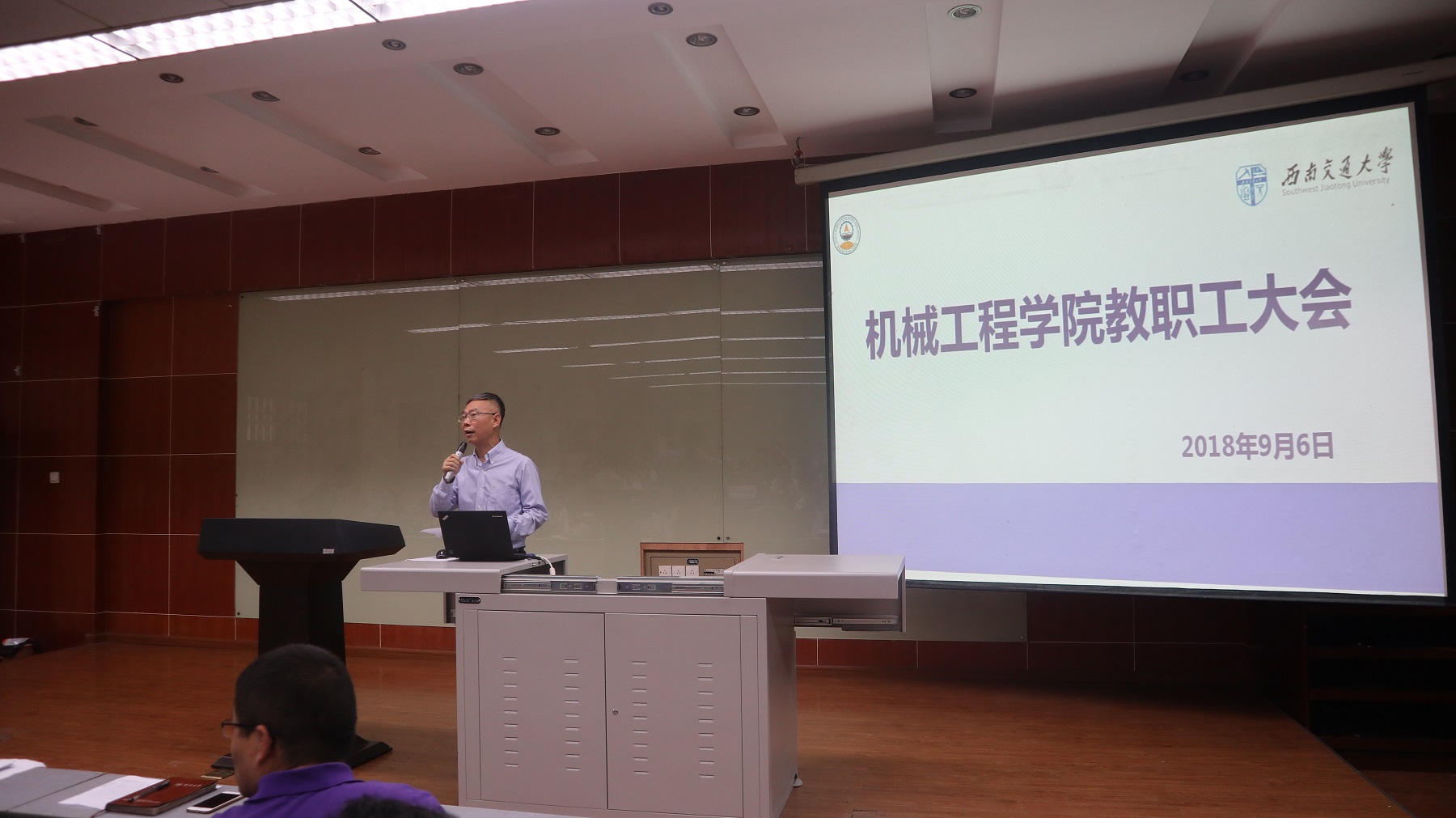 大会伊始,董大伟书记向全院教职工传达了王顺洪书记在中国共产党西南交通大学第十四届委员会第十一次全体会议上的报告和讲话精神。董书记围绕“抓改革 抓重点 聚焦学校主要矛盾 全面推进学校各项工作”报告主题对会议精神作了深入解读。他谈到,学校当前和今后一个时期的主要矛盾是“国家‘交通强国’、‘教育强国’、‘一带一路’倡议对大交通人才和科技的需求与我校的有效供给不足的矛盾”“师生和校友对美好生活的追求与学校给予的有效帮助不足的矛盾”。 党委要求全校上下务必要统一思想,在高等教育改革深入推进、‘交通强国’实施的历史大潮中,准确把握“两个主要矛盾”的科学内涵和核心要义,深挖制约学校改革建设发展中的弱项、短板和不足,积极用“两个主要矛盾”来全方位统一规划、指导、协调学校各项工作,探索根治“有效供给不足”的科学路径。党委号召全校上下要更加紧密地团结在以习近平同志为核心的党中央周围,增强“四个意识”,坚定“四个自信”,更加自觉地坚定社会主义办学方向,更加自觉地加强学校党的建设和思想政治工作,更加自觉地坚持学校发展目标和发展路线,更加自觉地深化改革,更加自觉地狠抓落实,坚决破除学校发展过程中的各种障碍,坚决补齐各类短板、不足和弱项,坚决在发展中保障和改善民生。全校上下要一起努力,一起奋斗,一起加油,一起拼搏,坚定不移朝着“交通特色鲜明的综合性研究型一流大学”总目标,扎扎实实建设轨道交通领域世界第一的西南交通大学。