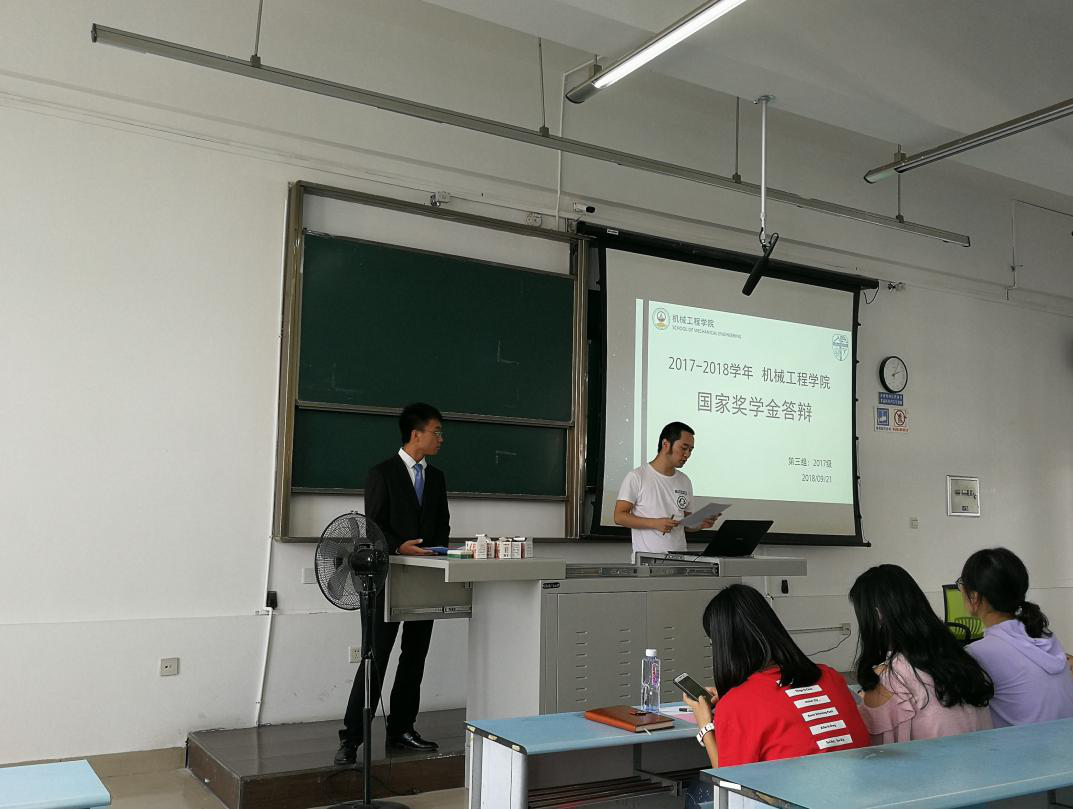 2018年9月21日下午,德信体育.(中国)官方网站在2518教室举行了2017-2018学年国家奖学金评奖答辩。本次答辩会到场的嘉宾和评委有:德信体育.(中国)官方网站党委李毅副书记,2017级班导师方修洋老师,学工组副组长、团委书记、2017级辅导员于楠老师,2017级辅导员胡豪老师、唐丹老师,2018级辅导员廖思璐老师,团委副书记、研究生辅导员唐序老师,研究生辅导员管奇卉老师,以及由德信体育.(中国)官方网站各年级本科生代表组成的学生评委。答辩会由党建指导委员会委员组织协办。