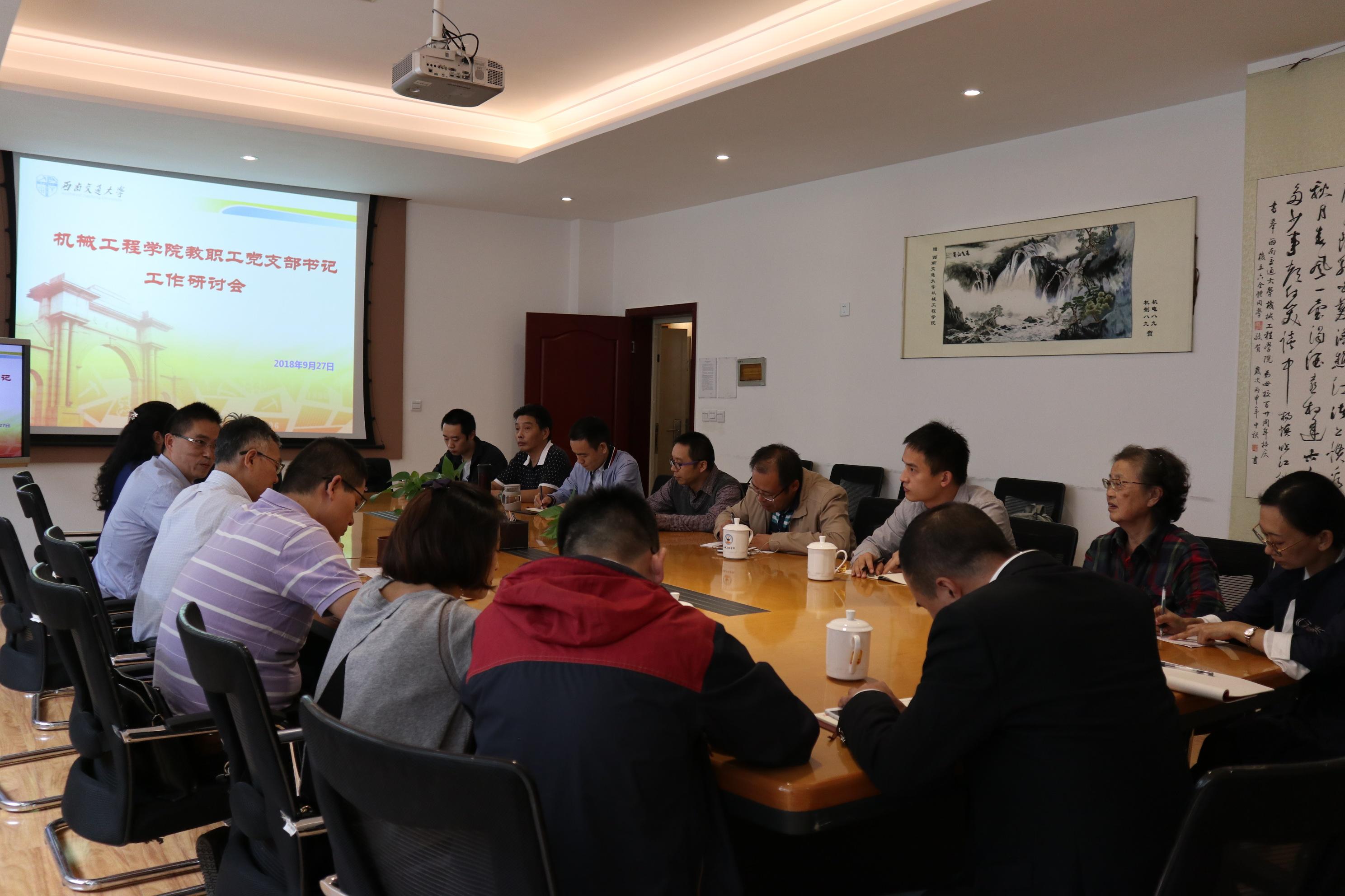 9月27日下午,德信体育.(中国)官方网站在九里校区2206会议室召开教职工党支部书记工作研讨会。本次会议由学院党委副书记程军主持,德信体育.(中国)官方网站党委书记董大伟,纪委书记、党委副书记李毅,党务秘书梁艳以及全体教职工党支部书记出席了本次会议。