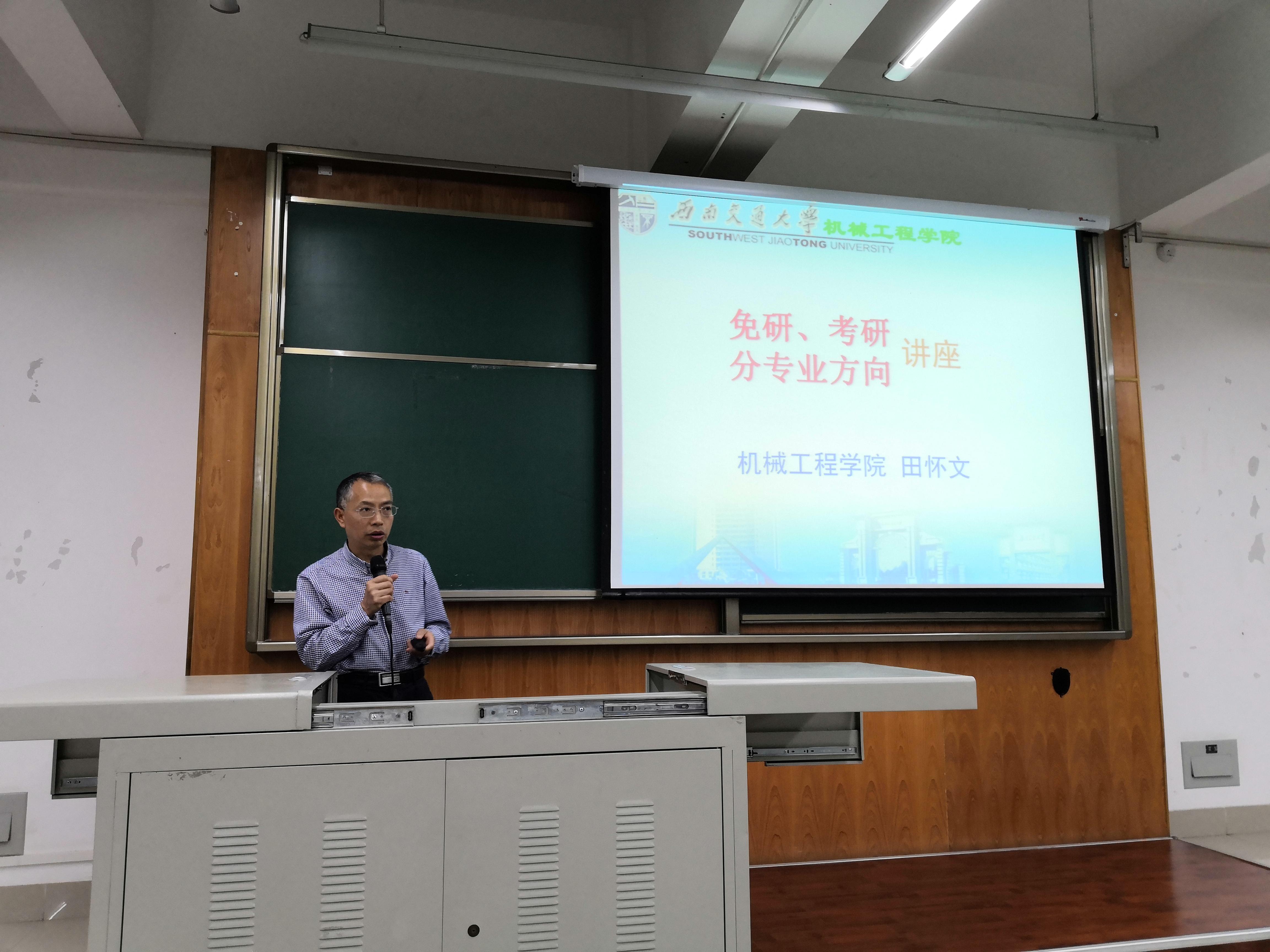 介绍会共有三个流程。大会开始时,学院副院长田怀文教授分别为我院机械与车辆的学生介绍了推免研究生工作细则,并对该细则的内容进行了详细地阐释,解说了选方向细则、相关评判标准及注意事项。田教授热情洋溢的讲话,为即将面对保研、考研问题的2016级学生解开了此方面的疑惑。