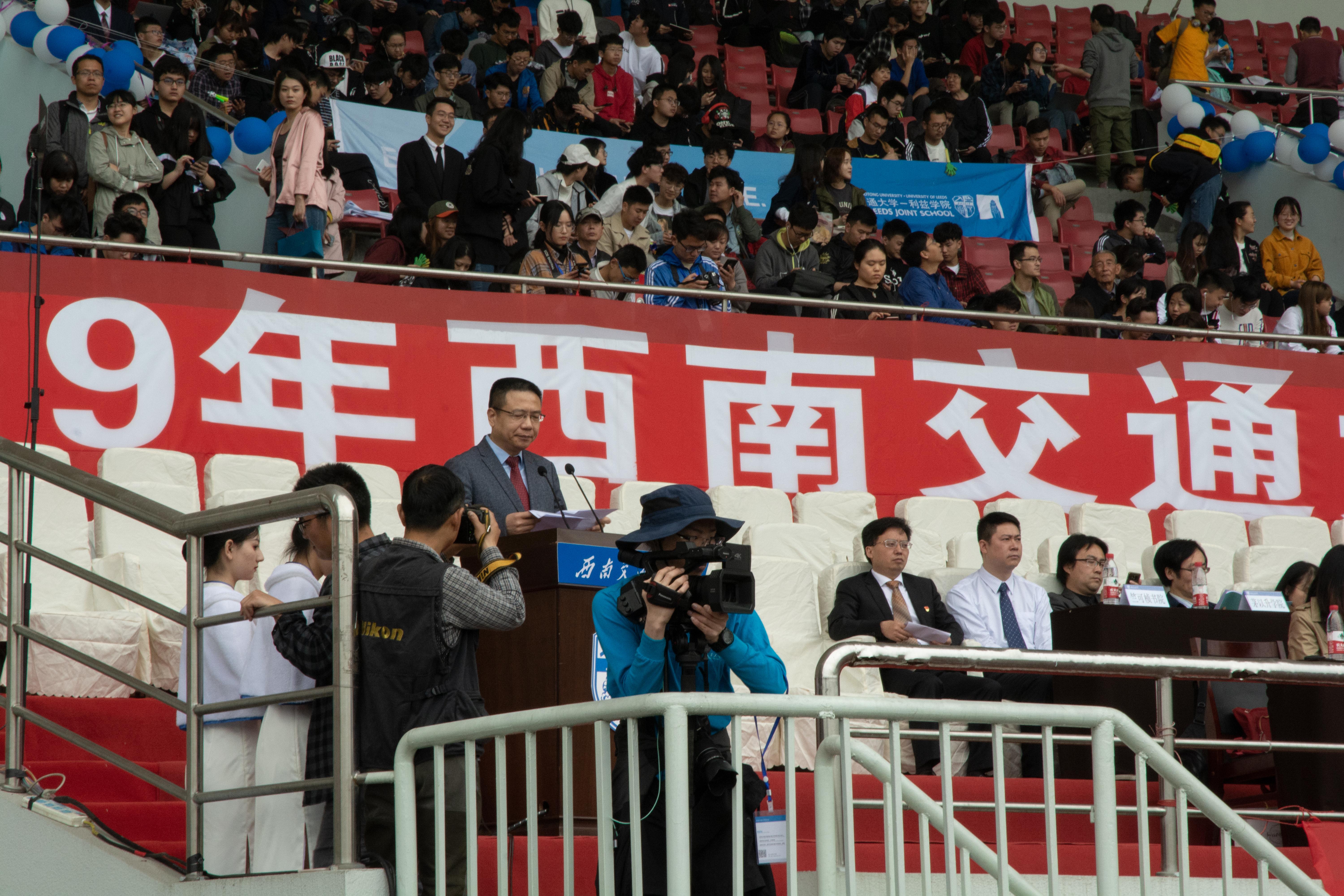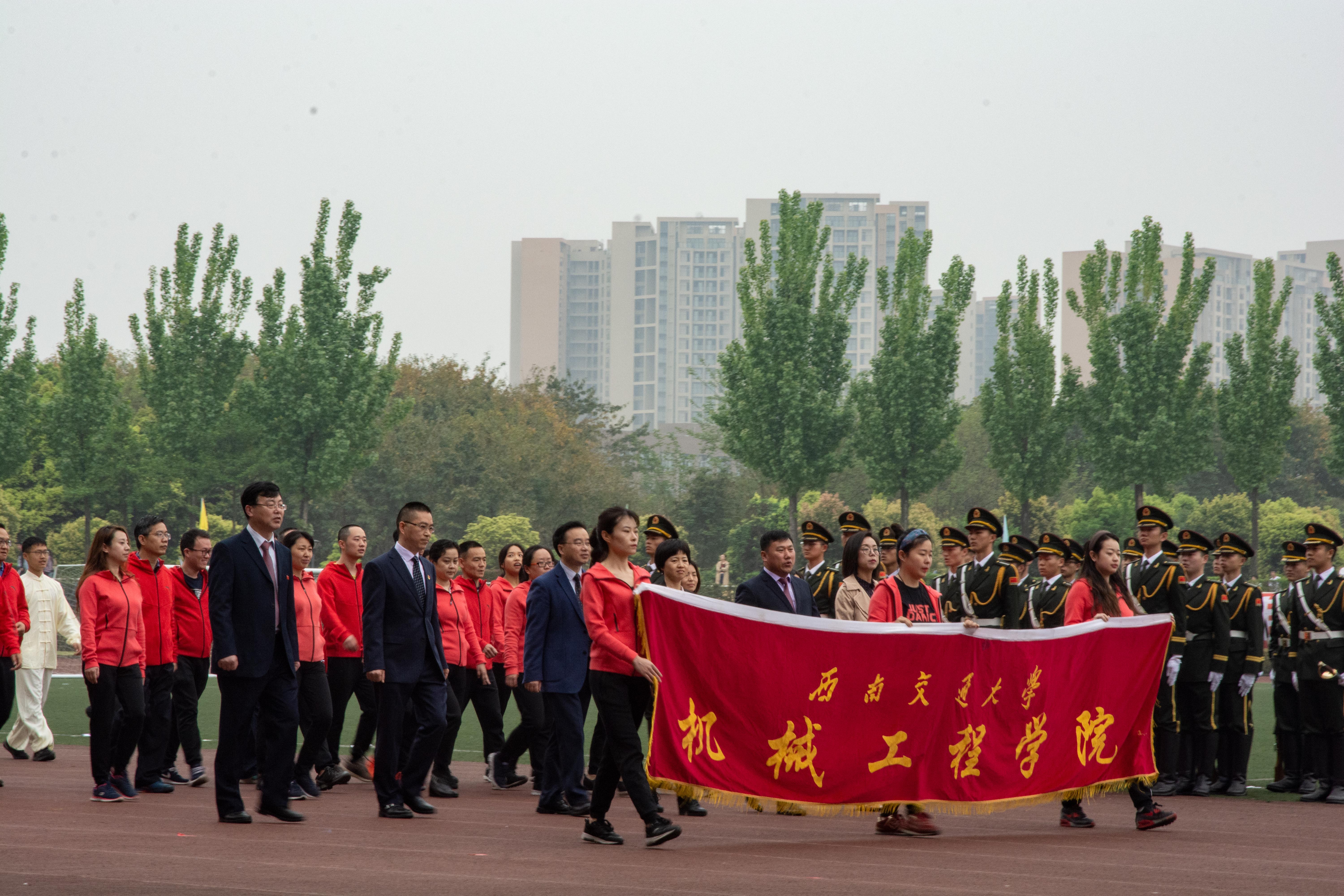 开幕式由西南交通大学党委副书记张学龙主持,张书记为我们介绍出席开幕式的领导、嘉宾后,徐飞校长发表致辞。最后运动员代表和裁判员代表宣誓,学校党委书记王顺洪宣布“西南交通大学第120届运动会”开幕。