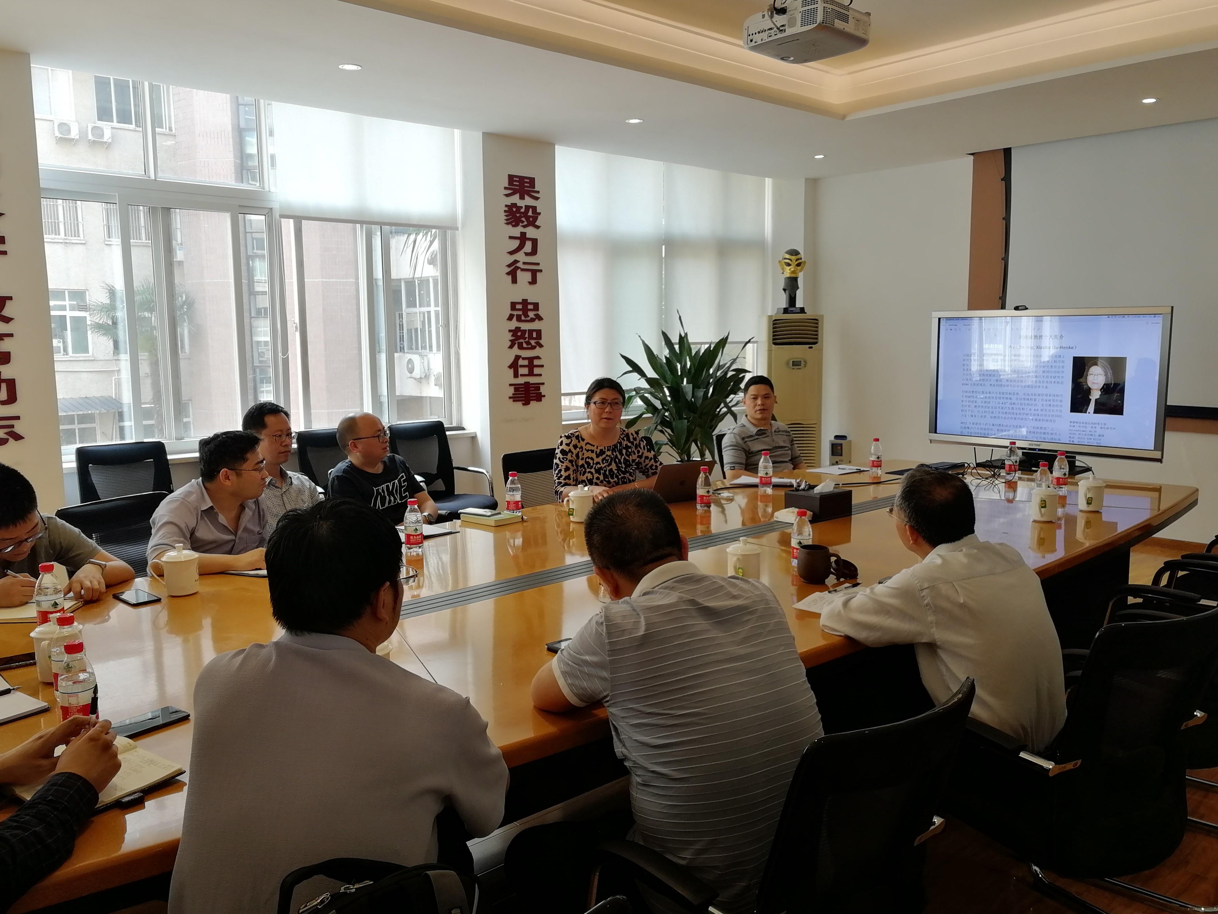 Liu-Henke教授首先介绍了两校中德合作的起源——与我院冯鉴老师的一次有关联合培养研究生的长谈,以及合作成果。自2010年签订合作协议以来,已连续9年选拔了总计31名学生到德国免费攻读硕士,其中机械学子有23名。这些学生中多名已毕业,并在世界500强企业就业,也有2名在德继续攻读博士。