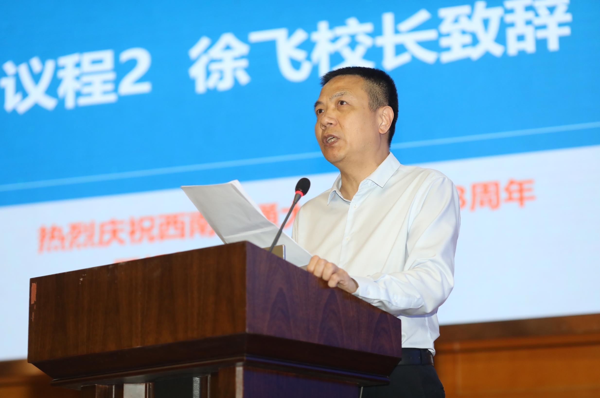 徐飞校长作了题为《着眼未来,切实加强基础研究和应用基础研究》的致辞,代表学校向出席论坛的领导、专家和嘉宾表示热烈的欢迎。他介绍,西南交大因铁路而生、因轨道而兴、因高铁而强,长期以来坚持以国家战略需求为导向,为中国轨道交通事业发展和铁路科技进步做出了重大贡献。他指出,未来轨道交通将成为各国展开科技竞争的重要“战场”,交通科技已经成为彰显国家软硬实力的关键要素,必须要有不进则退的危机感、时不我待的紧迫感、舍我其谁的使命感,通过潜心研究,力争在决定未来轨道交通格局的关键共性技术、前沿引领技术、现代工程技术、颠覆性技术等方面持续突破和取得创新。他相信通过本次论坛,必将进一步激发轨道交通领域科技创新的火花,助力加快建设“交通强国”。