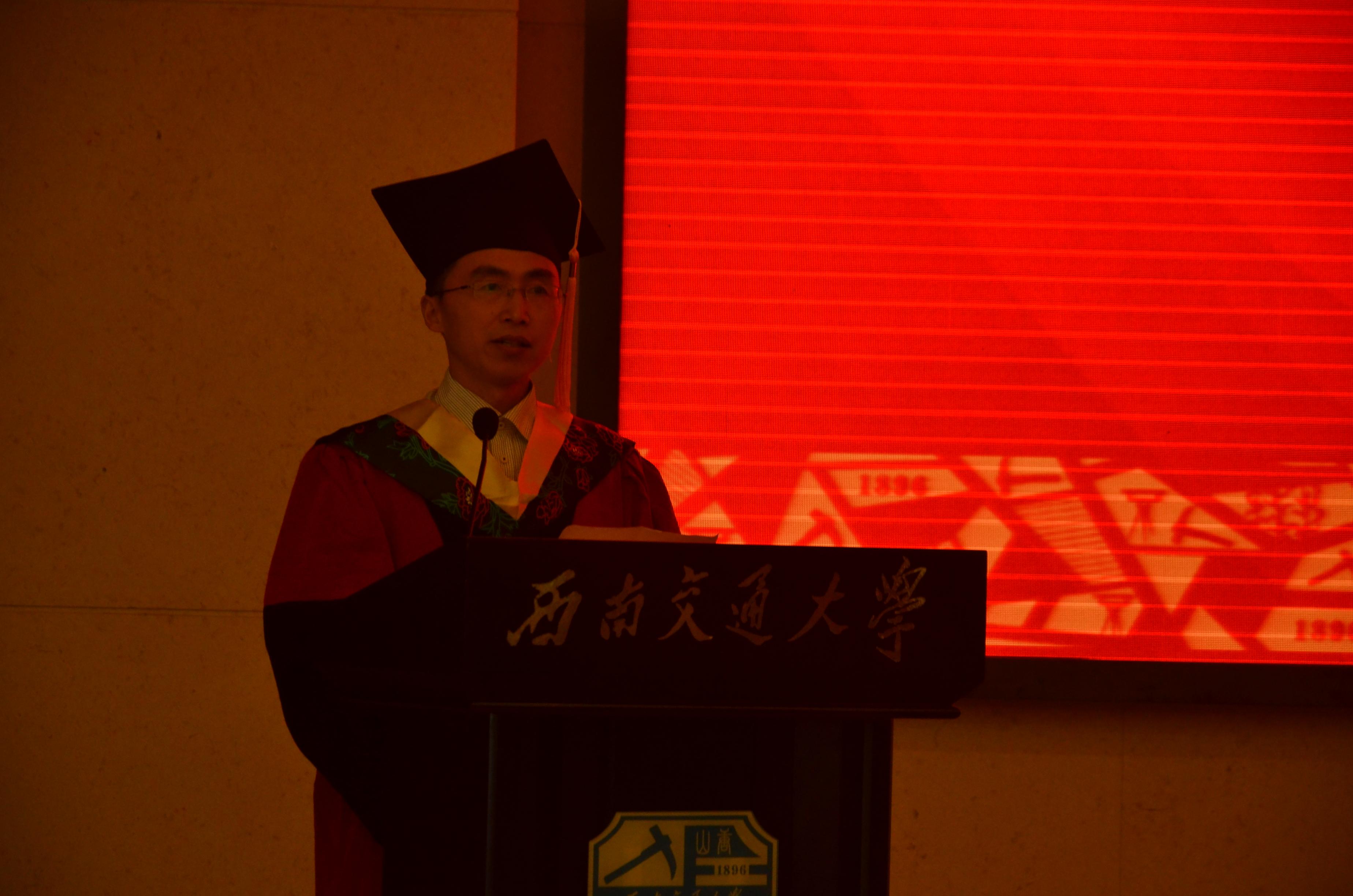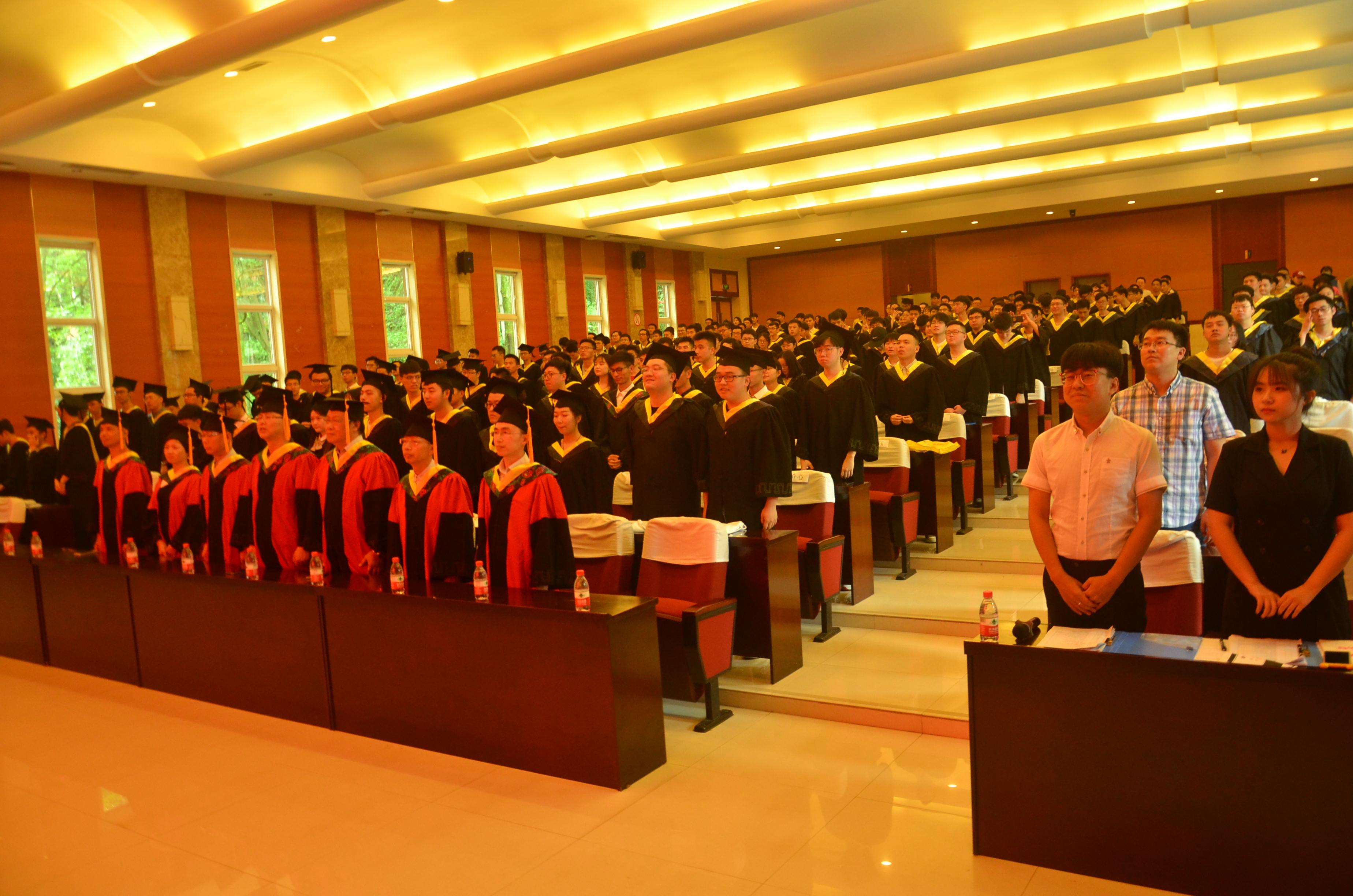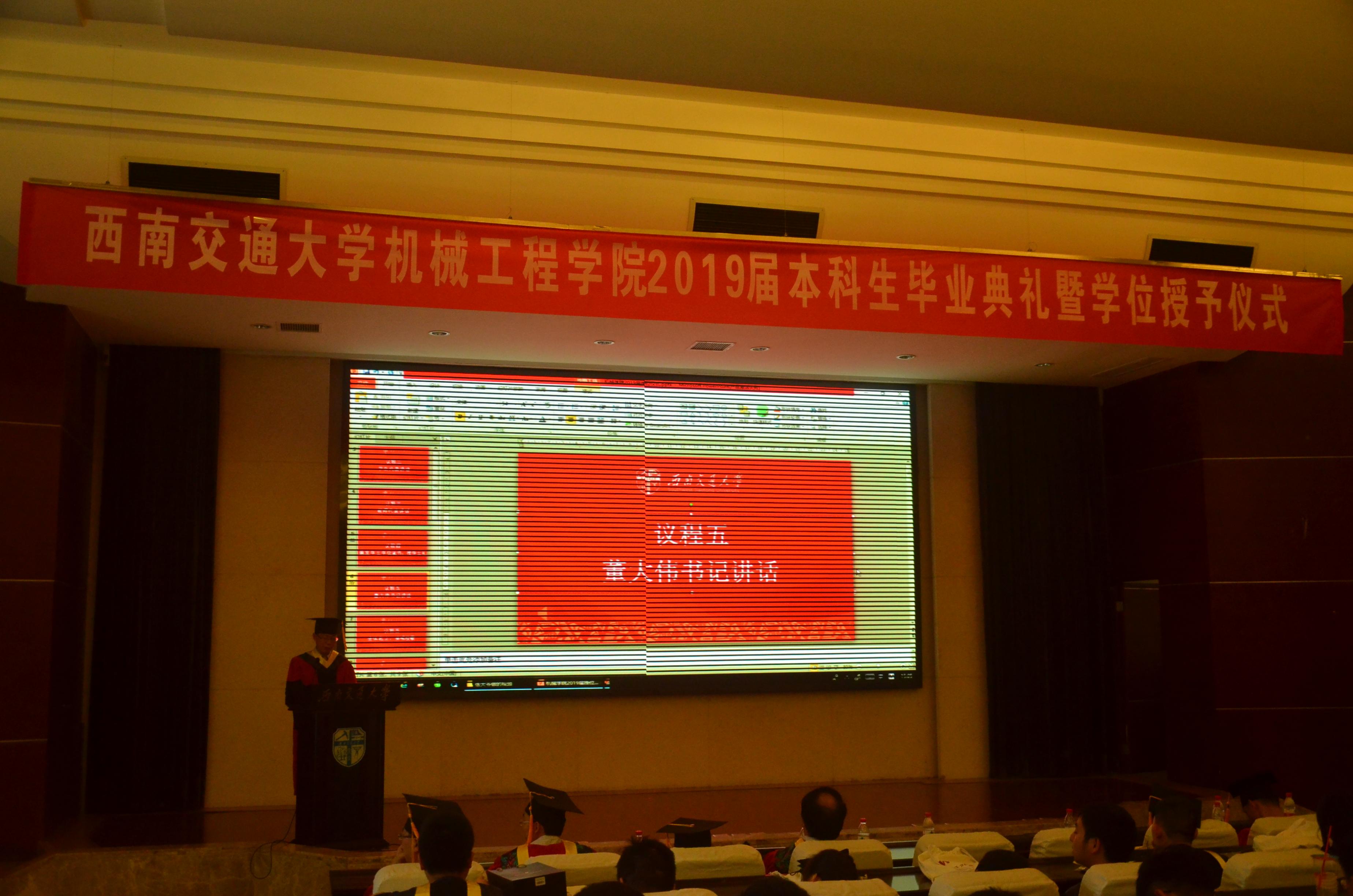 6月23日下午2:00,德信体育.(中国)官方网站在峨眉校区扬华讲堂举行2019届本科生毕业典礼暨学位授位仪式。机械学院党委书记董大伟、副书记徐嘉宁,副院长曾东红、副院长兼交控系主任田怀文,交控系常务副主任冯鉴,交控系副主任曾祥光,教师代表、辅导员代表和全体2019届305名本科毕业生参加典礼。典礼由机械学院党委副书记孟凡春主持。